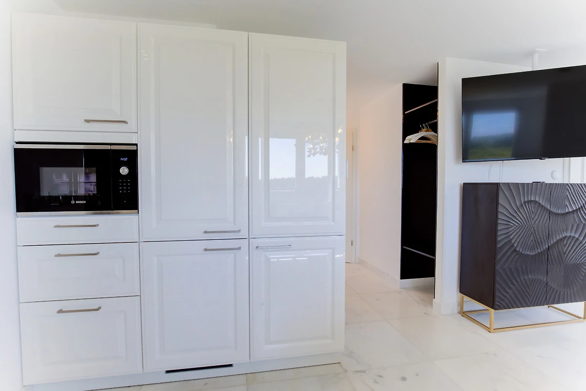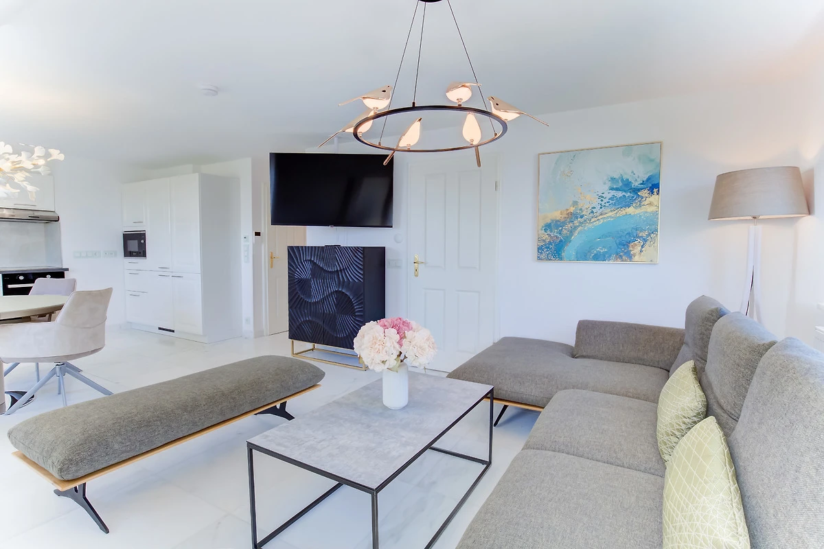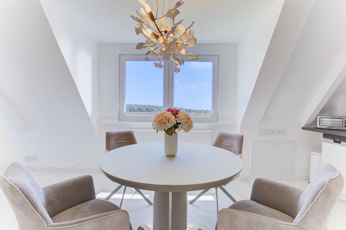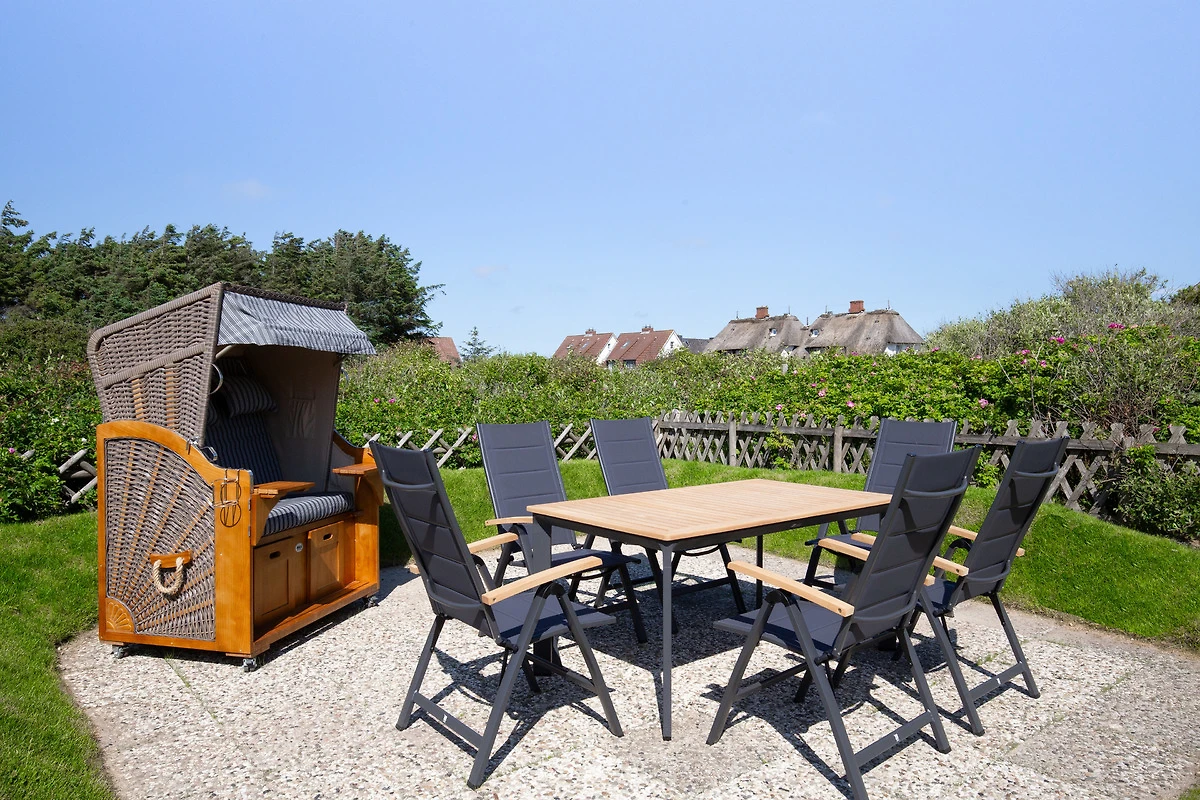 Diese exklusive über 2 Ebenen reichende 80m² Ferienwohnung verzaubert mit einem nach Süden ausgerichteten 25m² grossen Wohnzimmer mit einem wunderschönen Ausblick über die weitläufige Heidelandschaft, 2 Schlafzimmern, 2 Bädern und einer grossen Wohnküche. Im Obergeschoss erwartet Sie der lichtdurchflutete, grosszügige Wohn-/Essbereich mit tollem Ausblick. Eine voll ausgestattete Einbauküche mit Markengeräten sowie ein behagliches Doppelschlafzimmer mit einem Boxspringbett für 2 Personen, Einbauschränken sowie ein Duschbad befinden sich ebenfalls auf dieser Ebene. In dem darüber liegenden Dachgeschoss befindet sich ein weiteres Schlafzimmer mit zwei einzelnen Boxspringbetten und einem tollen Ausblick über das Meer und die Heide. Auch dieses Schlafzimmer verfügt über ein eigenes Duschbad. Dieser im Obergeschoss gelegenen Ferienwohnung ist auf der grossen Gartenwiese eine eigene Terrasse mit Strandkorb und Gartenmöbeln zugeordnet.