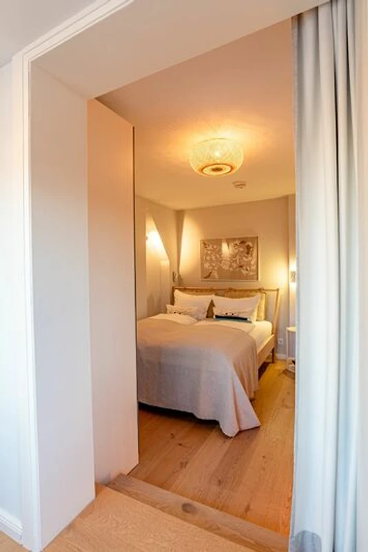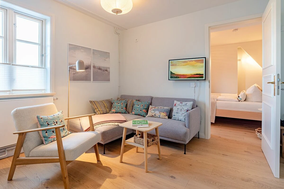 Die moderne Ferienwohnung Strandversteck im alten Kapitänshaus wurde im Jahr 2024 aufwendig renoviert und verfügt über 1 Schlafzimmer und 1 Bad und bietet somit komfortabel Platz für bis zu 2 Erwachsene zuzüglich einer Kleinkinderaufbettung.