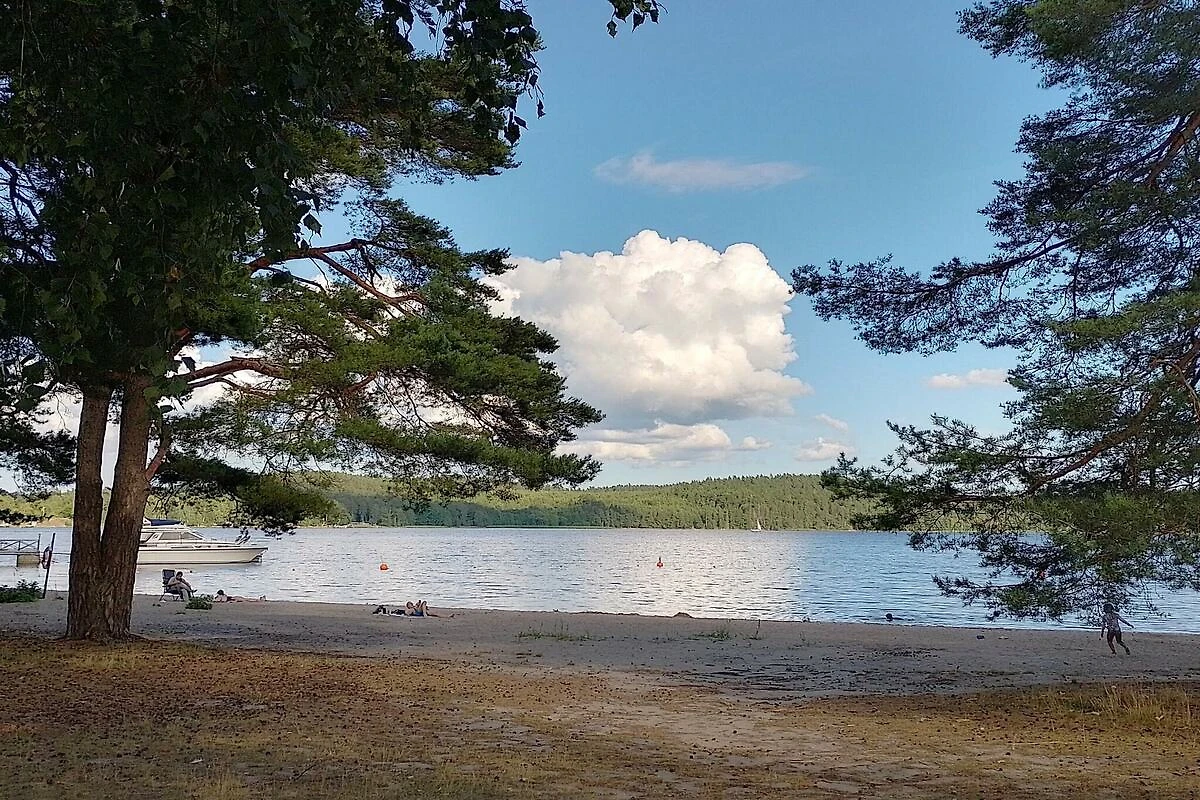 Willkommen in einer Idylle auf dem Lande außerhalb von Södertälje südlich von Stockholm, in der Nähe von Badesee, Wald und Großstadt. Das Grundstück bietet eine große, flache Rasenfläche, die sich perfekt zum Spielen eignet. Auf dem Grundstück gibt es viele Obstbäume und Beerensträucher, die Sie gerne probieren dürfen. Das Haus hat eine schöne Veranda, von dem ein Teil offen und ein anderer überdacht ist, und dazu einen verglasten Wintergarten, in dem man an kühleren Abenden gemütlich sitzen kann. Das Haus ist gut eingerichtet, mit einem geräumigen Wohnzimmer mit einem Tagesbett, das sich in ein Doppelbett verwandeln lässt, einem Schlafzimmer mit einem Einzelbett, einer kleinen Küche und einem Essbereich. In der Küche gibt es u.a. einen Wasserkocher, eine Mikrowelle und eine Kaffeemaschine. Auf dem Grundstück befindet sich auch ein kleiner Annex mit zwei Einzelbetten sowie Mikrowelle und Wasserkocher. Es gibt auch einen Minikühlschrank. In einem separaten Gebäude befindet sich eine geräumige holzbeheizte Sauna mit Dusche. Nebenan steht ein separates Toilettenhäuschen. Alle Häuser liegen nah beieinander und sind durch große Bäume und Hecken völlig unsichtbar. Parkplätze stehen neben der Hecke zur Verfügung. Wenn Sie morgens oder abends im nahe gelegenen See baden möchten, sind es nur ein paar Minuten zu Fuß. Es gibt sowohl einen Steg als auch einen kleinen Sandstrand. Ein wunderbares, gemütliches Haus!