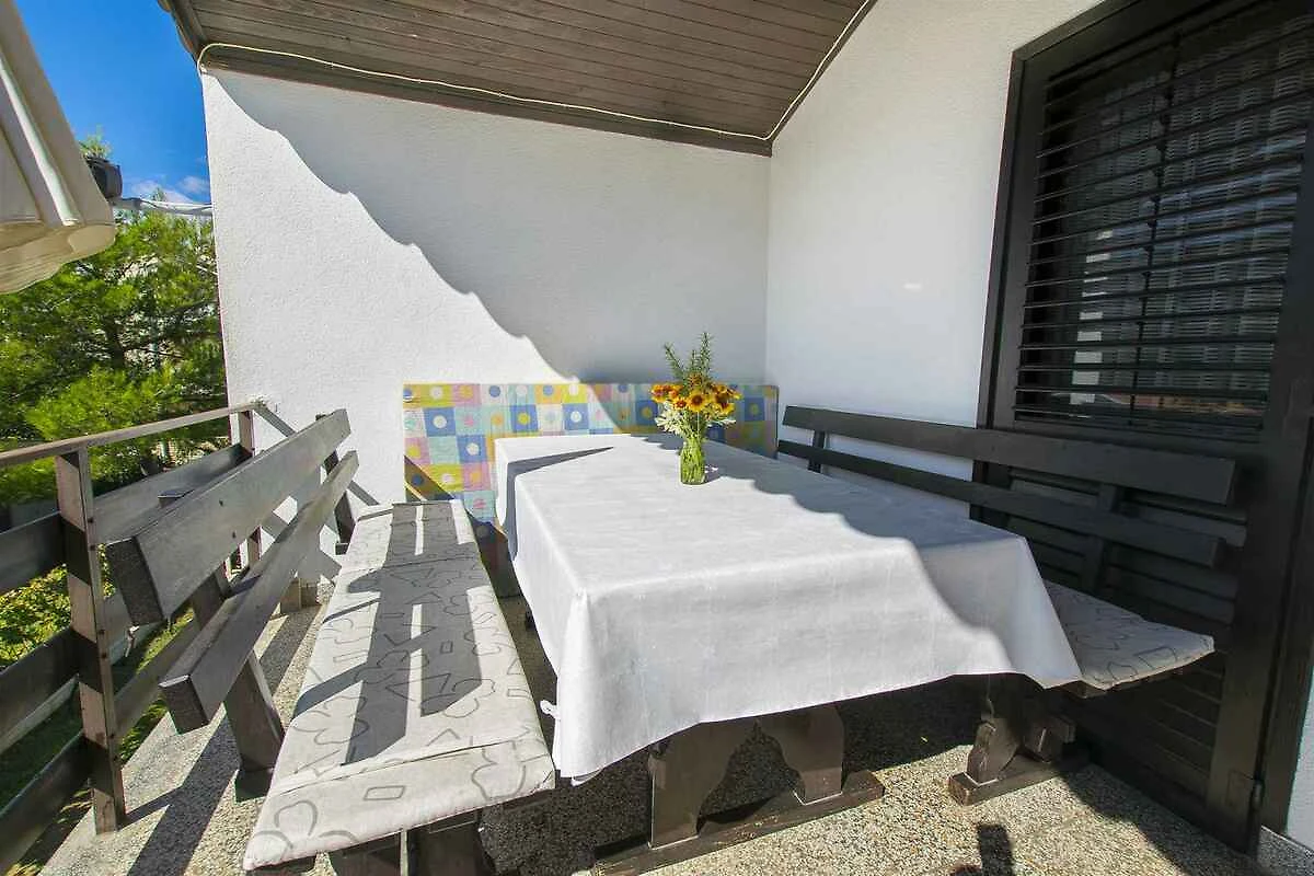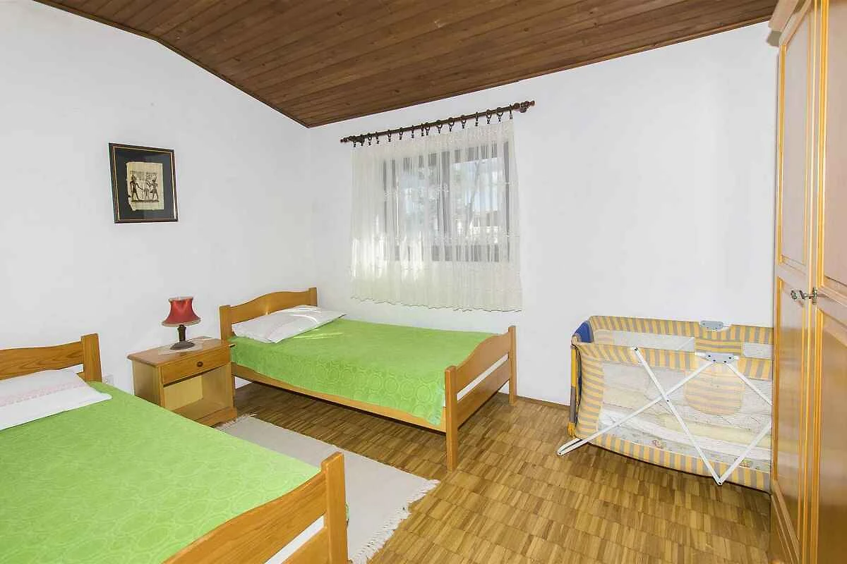 Privlaka. Die Ferienwohnung befindet sich auf einem geschlossenen Gartengrundstück mit Blumen, Sträuchern und Bäumen, von einem Zaun und einer Hecke begrenzt. Der Vermieter wohnt nicht im Haus oder auf dem Grundstück. Aussicht: Grünfläche. Die Zufahrt erfolgt über eine Nebenstrasse (asphaltiert). Parkplatz auf dem Grundstück.