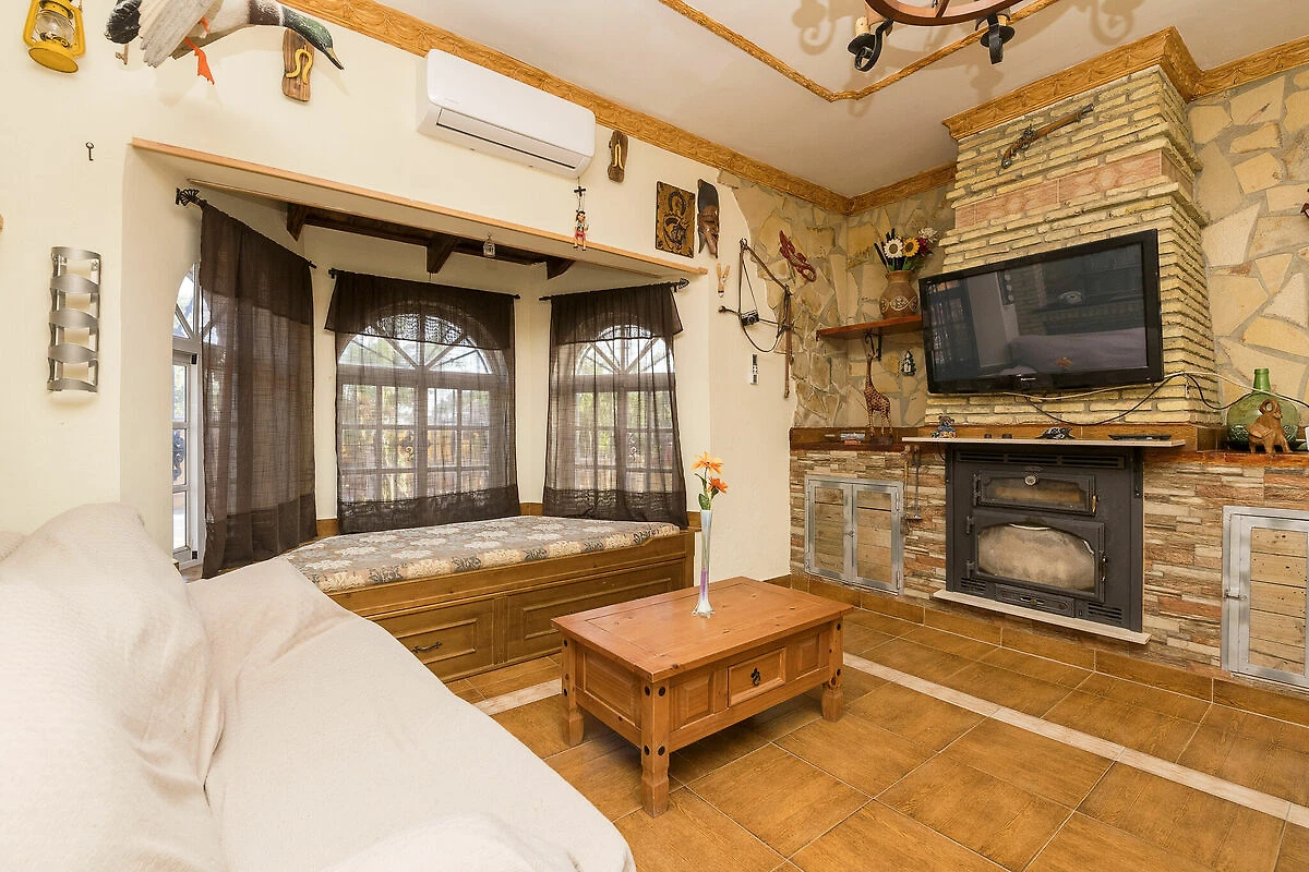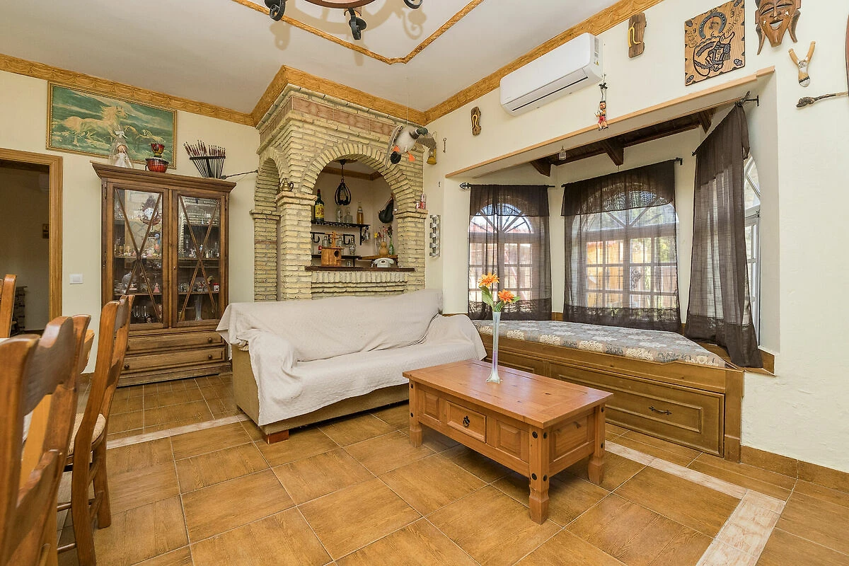 Das Grundstück hat ein sehr großes Gelände mit Hühnern, Vögeln, einem Garten usw. Es gibt eine Klimaanlage im Wohnzimmer und in einem der Schlafzimmer, während die anderen beiden Zimmer Ventilatoren haben.