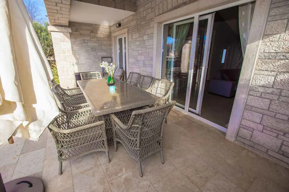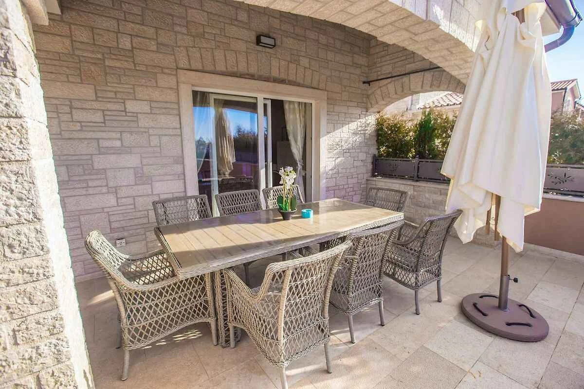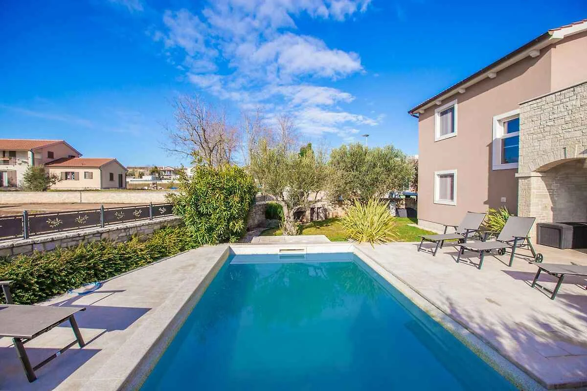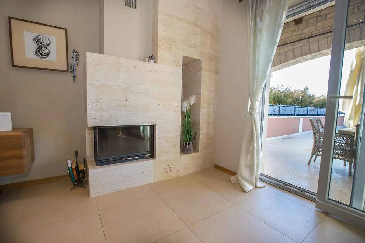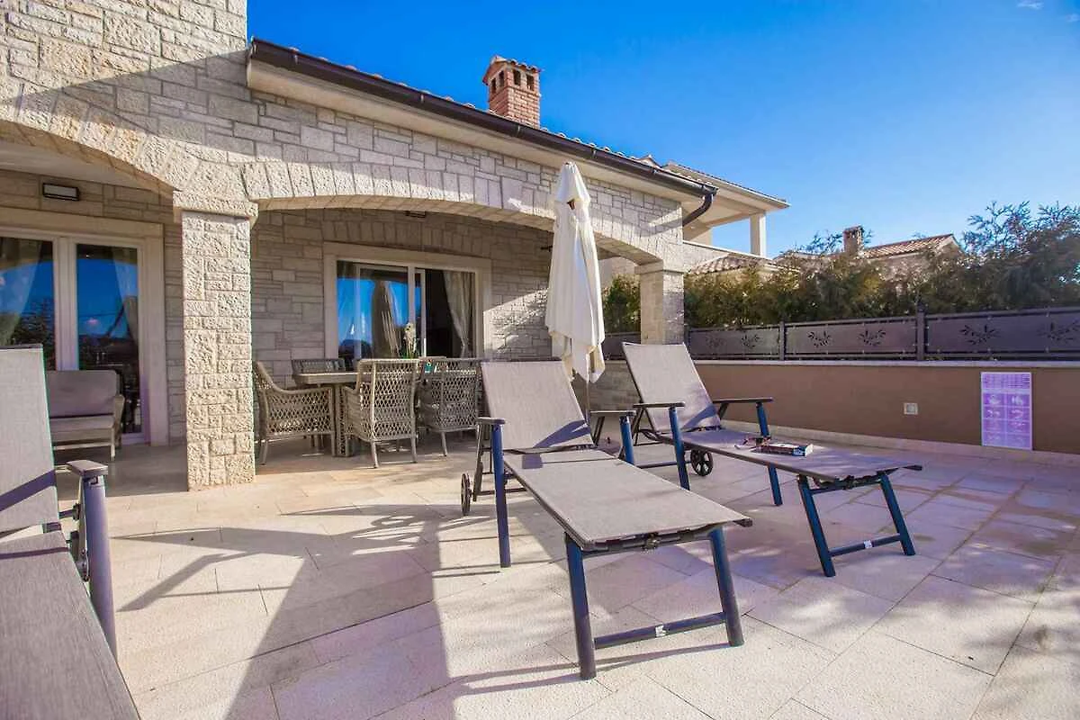 Kaštelir. Die Villa befindet sich auf einem geschlossenen Gartengrundstück mit Blumen, Sträuchern und Bäumen, von einem Zaun begrenzt. Der Vermieter wohnt nicht im Haus oder auf dem Grundstück. Die Villa befindet sich im etwas höher gelegenen Ort Kaštelir in unmittelbarer Nähe von grossen Wein- und Olivenfeldern. Trotz der ruhigen und idyllischen Lage sind Geschäfte und Restaurants einfach zu Fuss erreichbar. Die Zufahrt erfolgt über eine Nebenstrasse (asphaltiert). Parkplatz auf dem Grundstück.