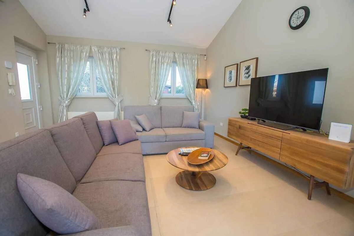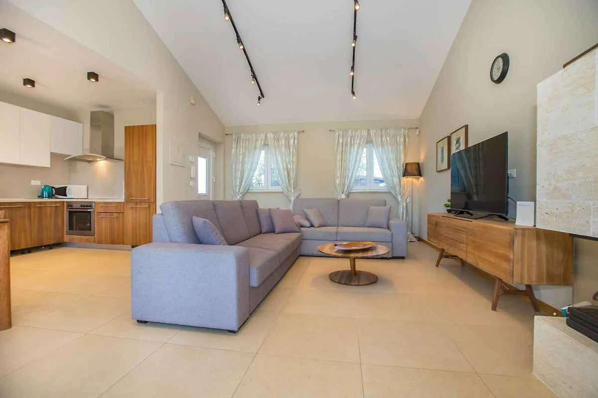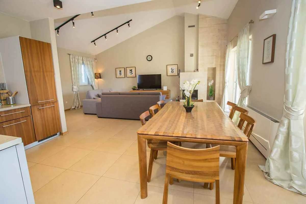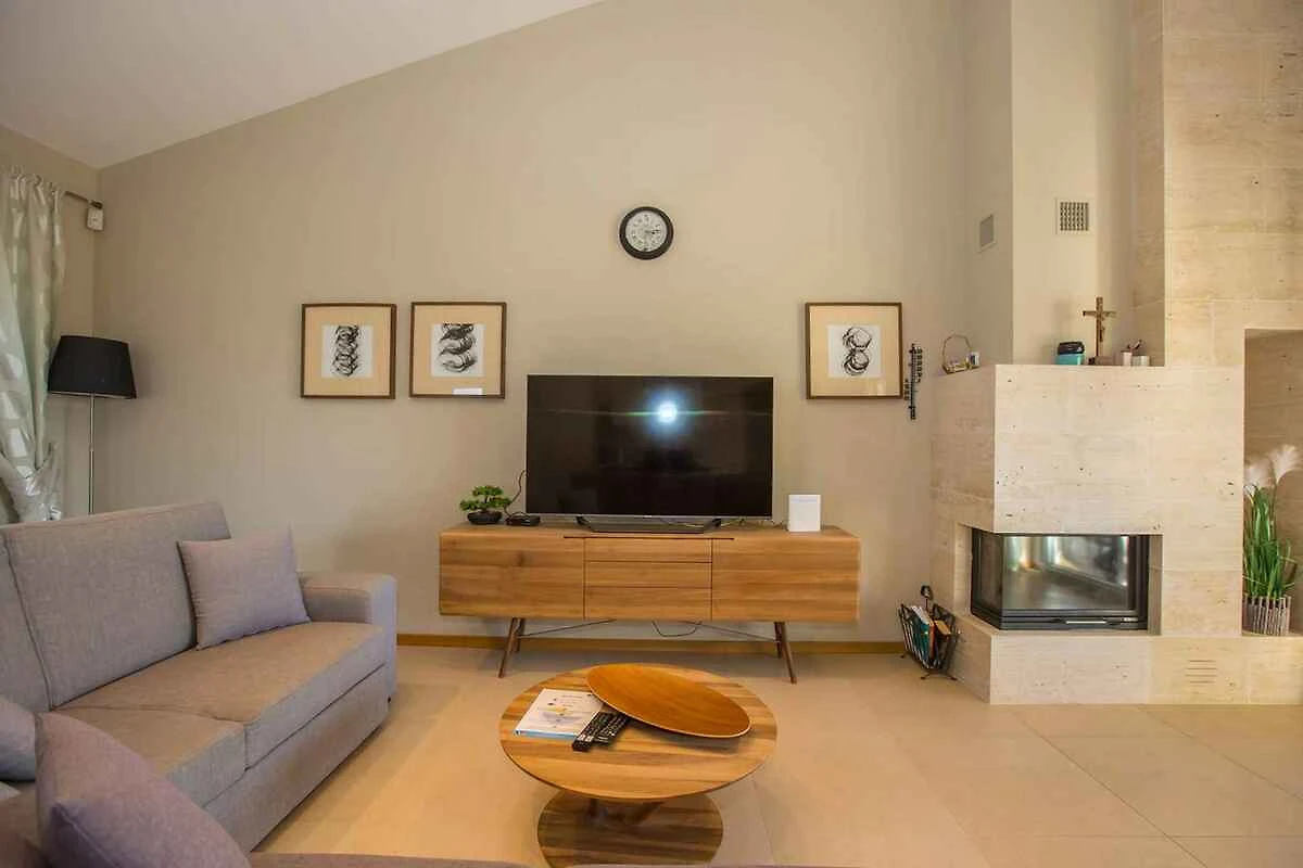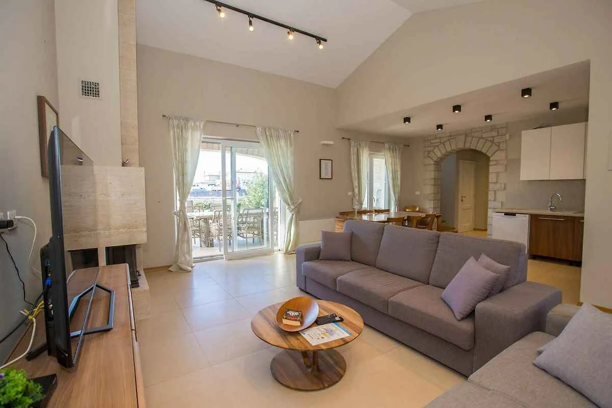 Kaštelir. Die Villa befindet sich auf einem geschlossenen Gartengrundstück mit Blumen, Sträuchern und Bäumen, von einem Zaun begrenzt. Der Vermieter wohnt nicht im Haus oder auf dem Grundstück. Die Villa befindet sich im etwas höher gelegenen Ort Kaštelir in unmittelbarer Nähe von grossen Wein- und Olivenfeldern. Trotz der ruhigen und idyllischen Lage sind Geschäfte und Restaurants einfach zu Fuss erreichbar. Die Zufahrt erfolgt über eine Nebenstrasse (asphaltiert). Parkplatz auf dem Grundstück.