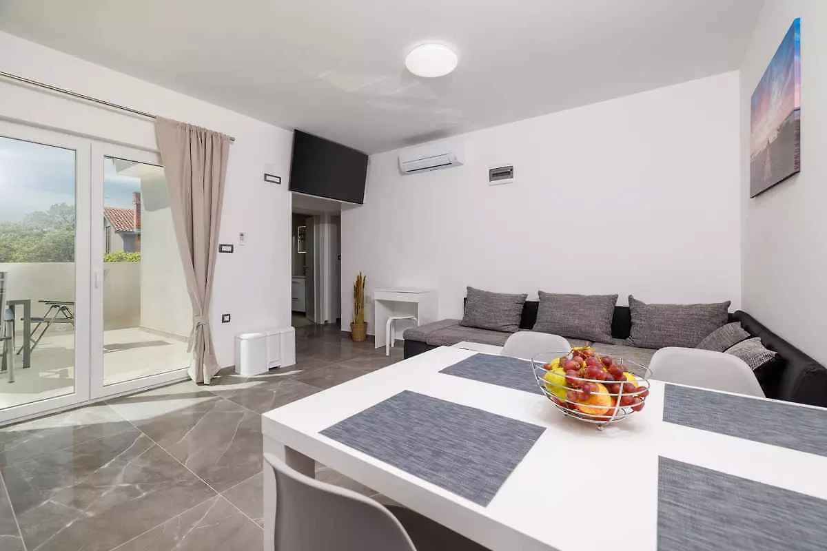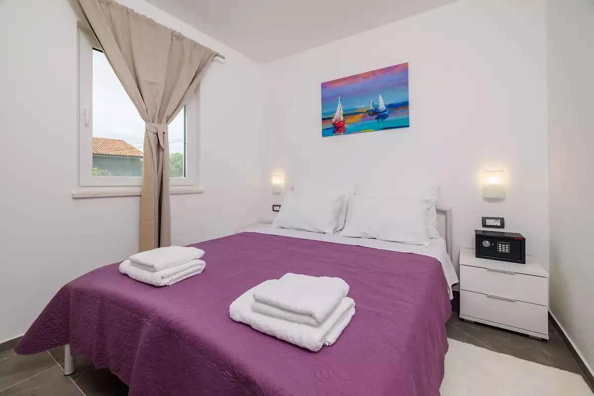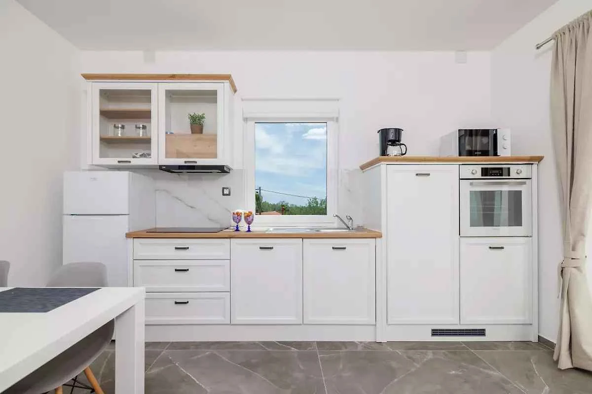 Kras-Dobrinj. Die Ferienwohnung befindet sich auf einem geschlossenen Gartengrundstück. Der Vermieter wohnt im Haus, nutzt jedoch einen separaten Eingang. Parkplatz auf dem Grundstück.