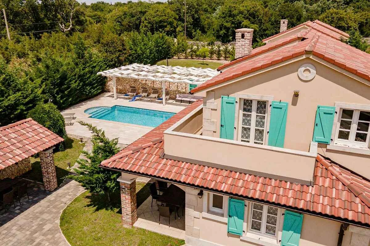 Dobrinj. Villa Kras befindet sich in einer wunderschönen Umgebung, 7 km vom Meer entfernt in einem kleinen malerischen Dorf Kras, einer grünen Oase für einen ruhigen und erholsamen Urlaub. Ihre ganze Familie wird es geniessen.
