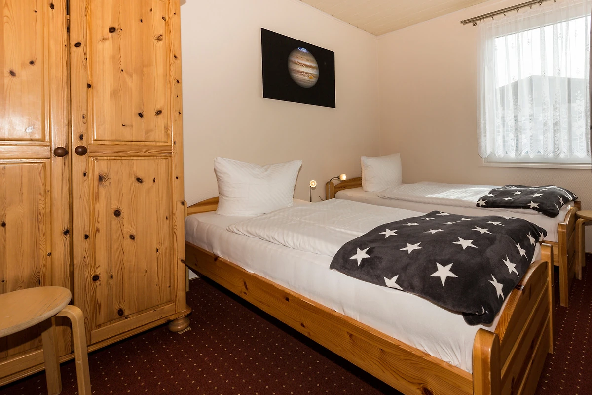 Hinter dem Haus befindet sich eine kleine Sternwarte mit Teleskopen zum Beobachten von Sternen, Planeten, Galaxien und vieles mehr. Detlef Zemlin bietet Sternenführungen bei klarem Himmel an.