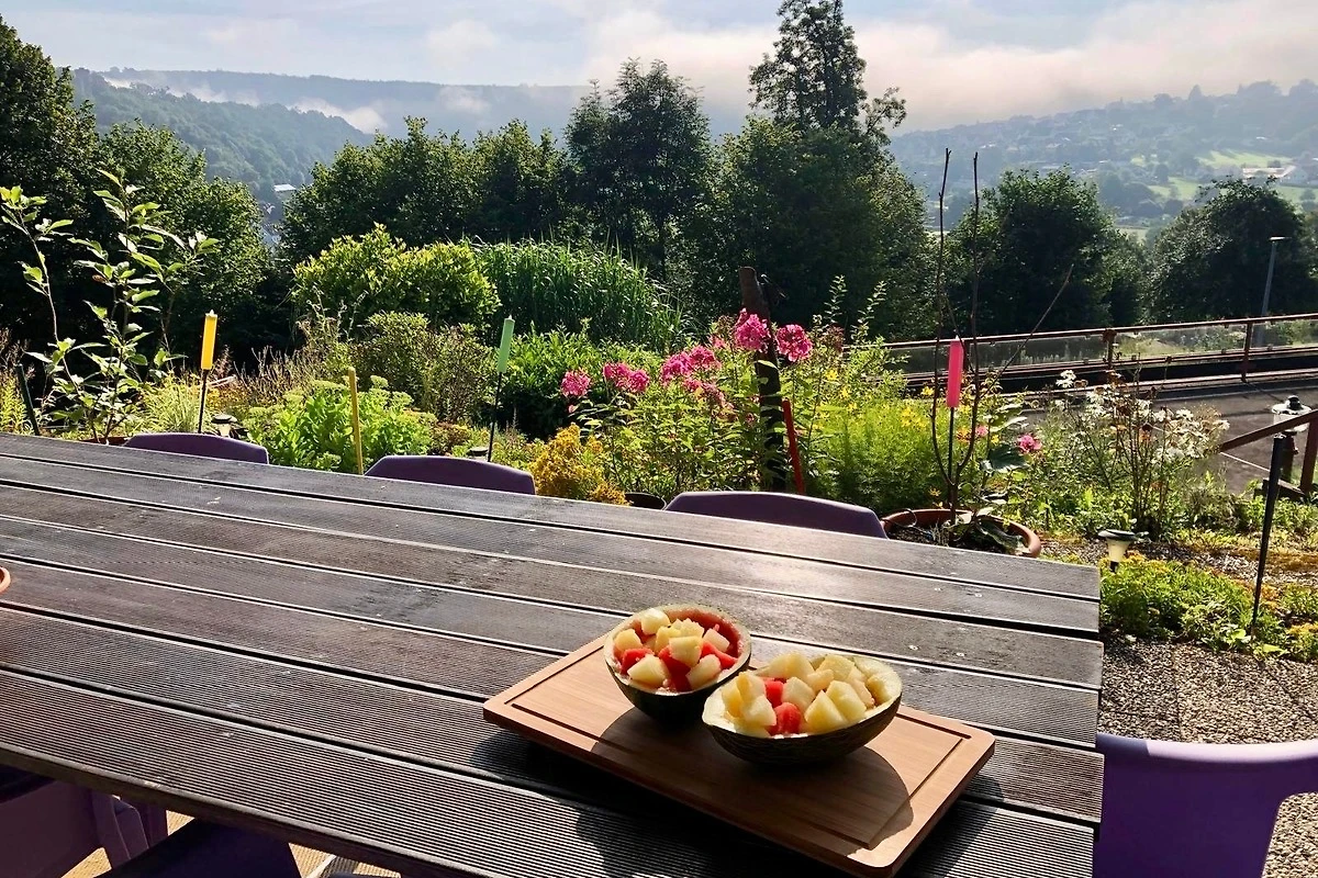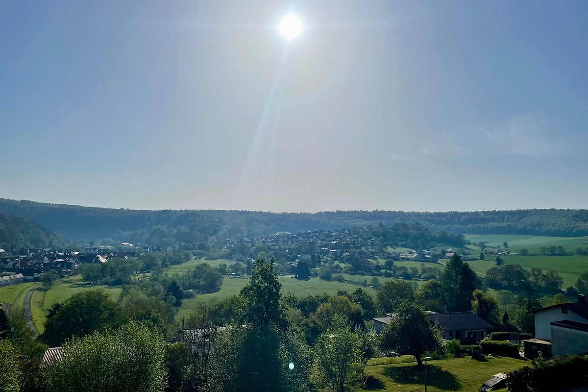 Garten: nutzen Sie sonnige Tage in unserem grossen, gemeinsam genutzten Garten, der dennoch viel Privatsphäre bietet und teilweise umzäunt ist, sodass Hunde und Kinder sicher spielen können. Der Garten bietet ein fantastisches Panoramablick über Helmarshausen, einschliesslich Sicht auf die Burg. Veranstalten Sie ein BBQ, backen Sie Ihre eigenen Pizzas im Aussenofen oder geniessen Sie einfach das schöne Wetter.