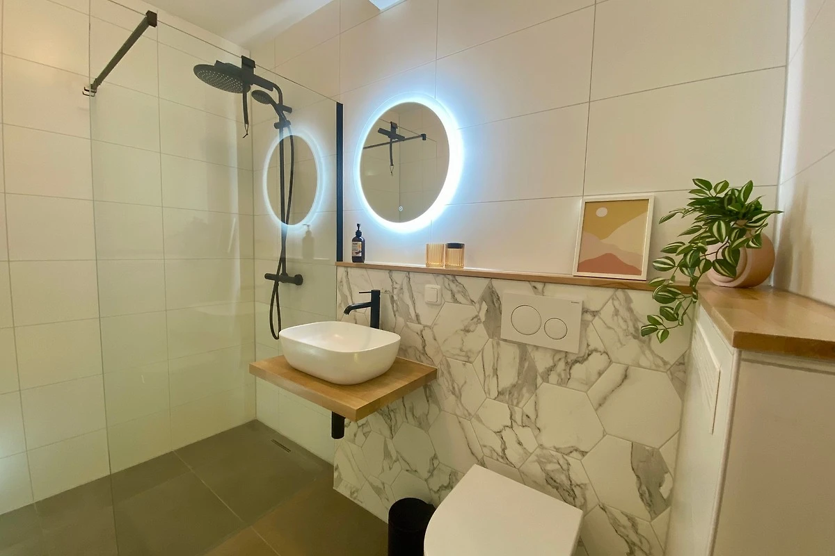 - Modernes Badezimmer: geniessen Sie das elegante Design und die modernen Annehmlichkeiten wie eine Regendusche mit Handdusche in unserem kürzlich renovierten Badezimmer.