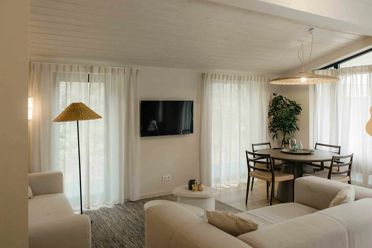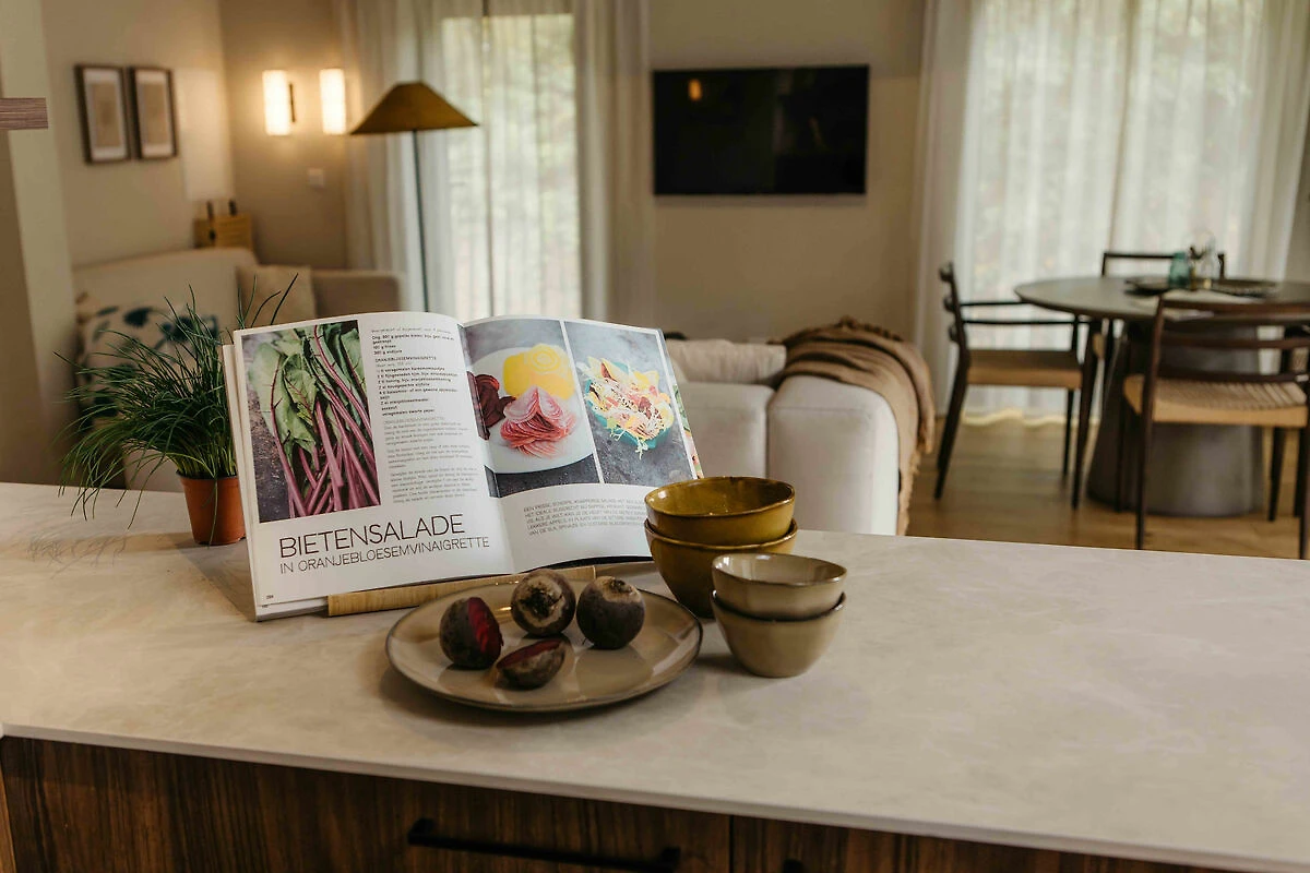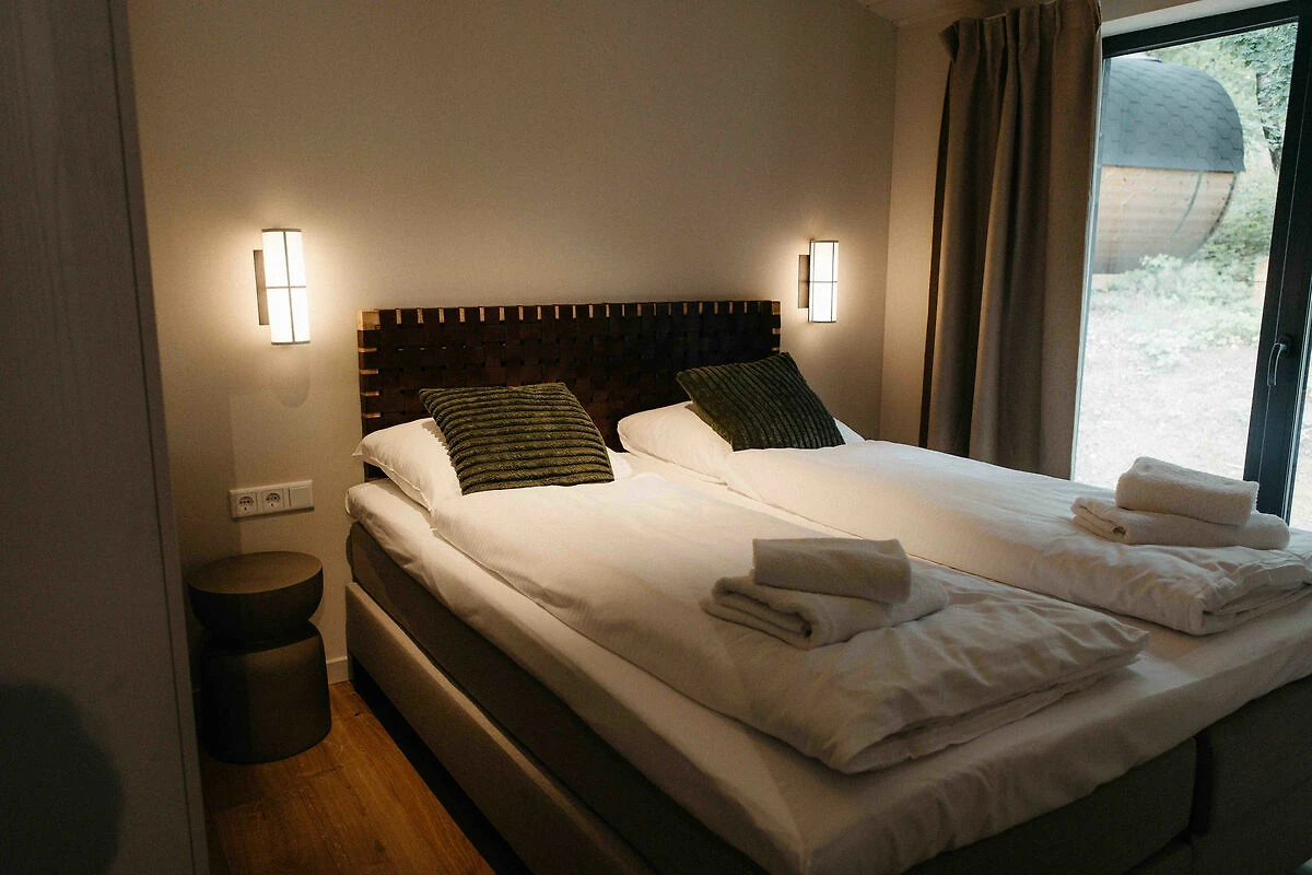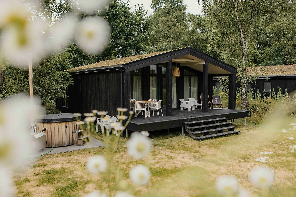 Zur Ruhe kommen in diesem ökologischen Ferienhaus in The Hills mit privatem Hot Tub. Das Haus liegt in einer hügeligen, waldreichen Umgebung des Parks und bietet viel Privatsphäre – nur 150 Meter vom See und Strand entfernt.Das echte Back-to-Nature-Gefühl mit dem Komfort von heute: Umgeben von Hügeln, mit herrlichem Blick in die Natur und einem privaten Hot Tub.Geniessen Sie die frische Luft und die beruhigende, malerische Aussicht auf die sanfte Hügellandschaft rund um Wilsum. Idyllische Wander- und Radtouren durch die charmante Umgebung versprechen maximale Entspannung. Kleine Heideflächen, Kiefernwälder, Bäche und Weitblicke sorgen für ein echtes Naturerlebnis! Auch für Kinder gibt es viel zu entdecken: Spielplätze in der Nähe, See und Strand nur 150 Meter entfernt und bei schlechtem Wetter lädt der Indoor-Spielplatz zum Toben ein.Nach einem erlebnisreichen Tag können Sie im eigenen Hot Tub entspannen – in geschützter Lage, mit Blick auf die Natur und in unmittelbarer Nähe zum See. Das ökologische Ferienhaus von ca. 56 m² mit Sedumdach besticht durch seine natürliche Ausstrahlung. Die hochwertig ausgestattete Unterkunft bietet eine grosszügige Veranda mit Blick ins Grüne, einen privaten Hot Tub zwischen den Bäumen, ein modernes Badezimmer, ein helles Wohn-/Esszimmer und zwei geräumige Schlafzimmer mit komfortablen Doppel-Boxspringbetten – ideal für Erwachsene oder Kinder. Zudem gibt es ein separates Einzelbett für einen fünften Gast.Alle Einrichtungen des Resorts stehen Ihnen selbstverständlich zur Verfügung. Willkommen in The Hills mit privatem Hot Tub!