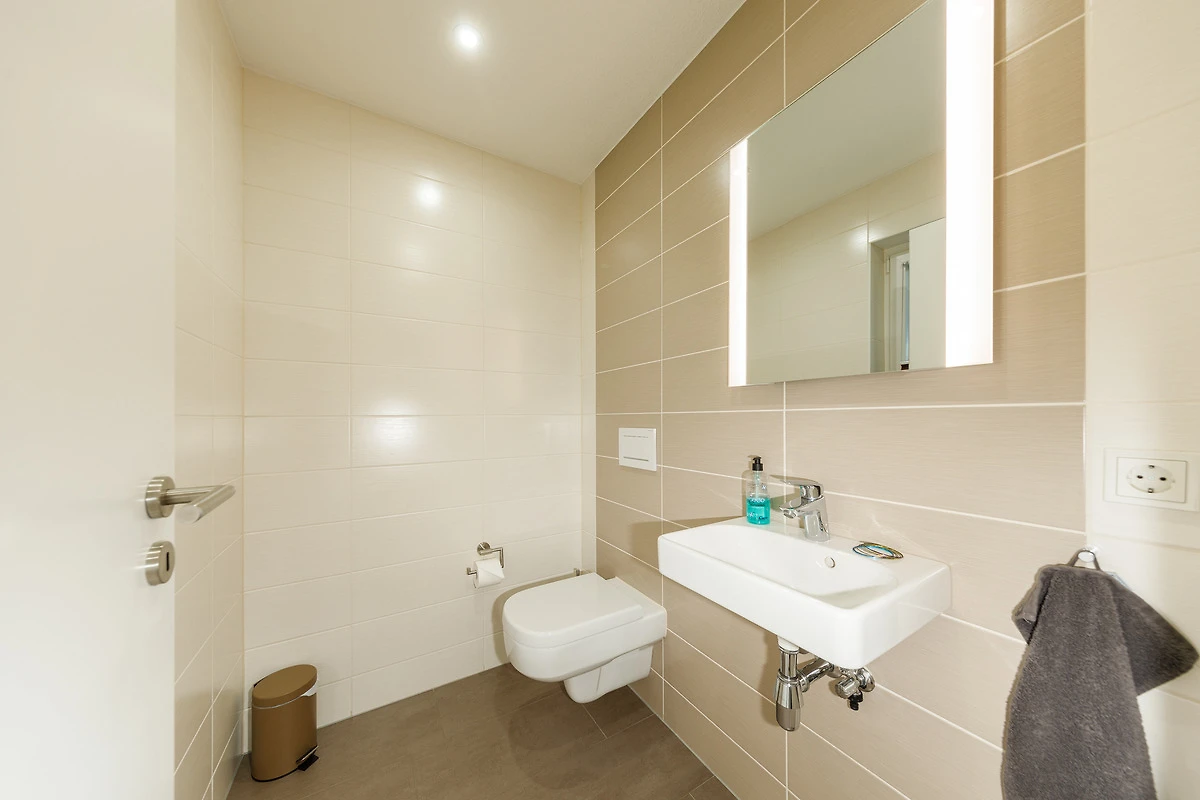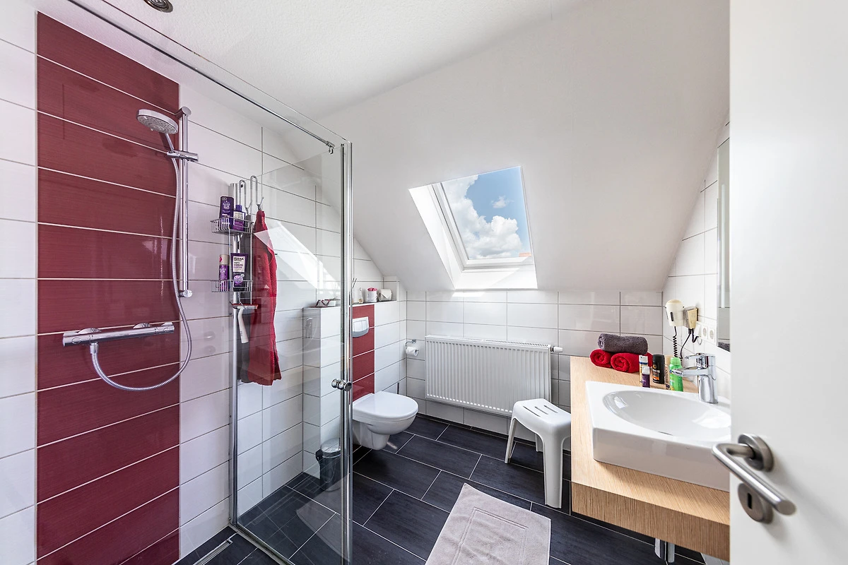 1 Duschbad mit ebenerdiger Regendusche und Föhn