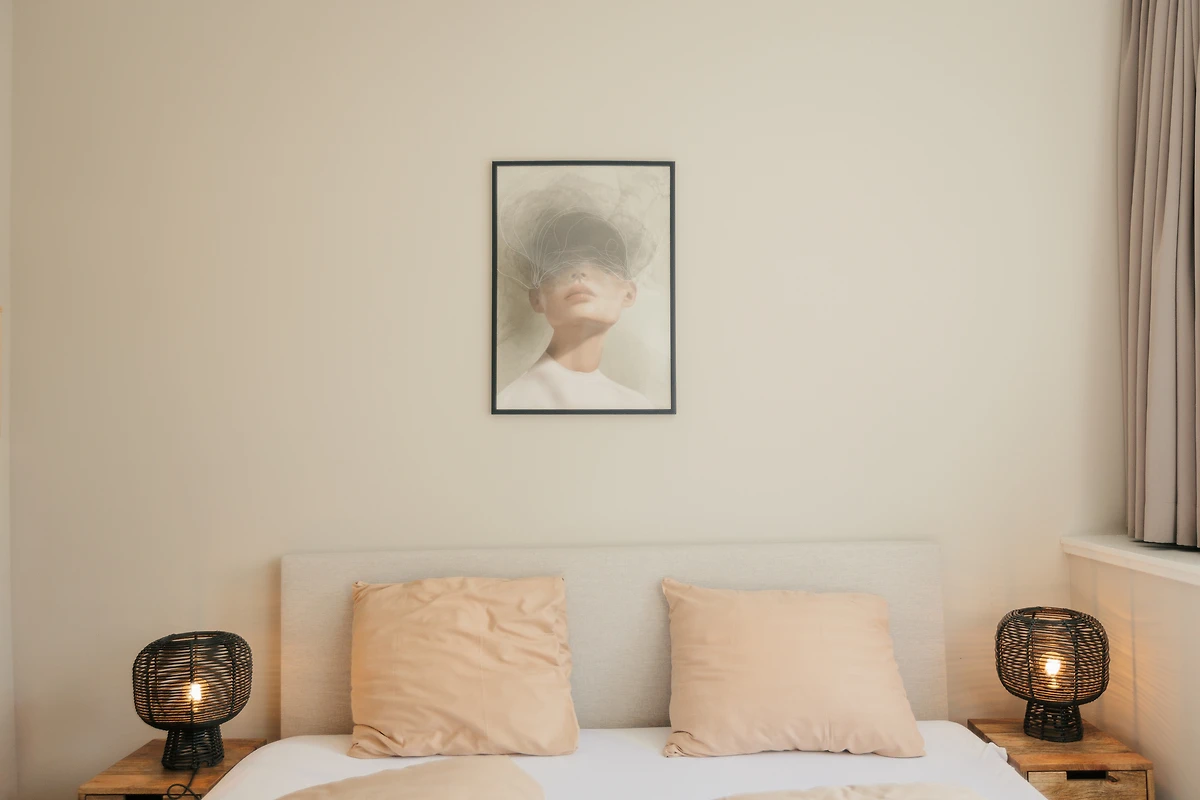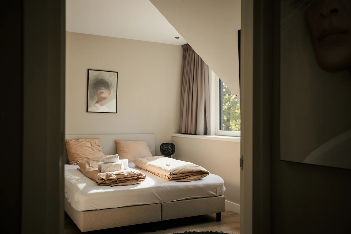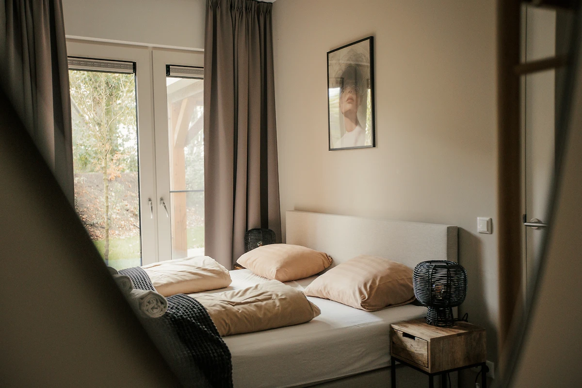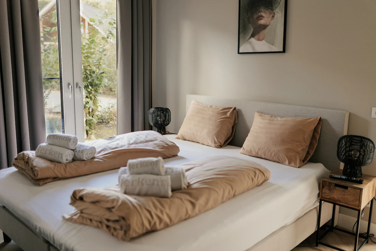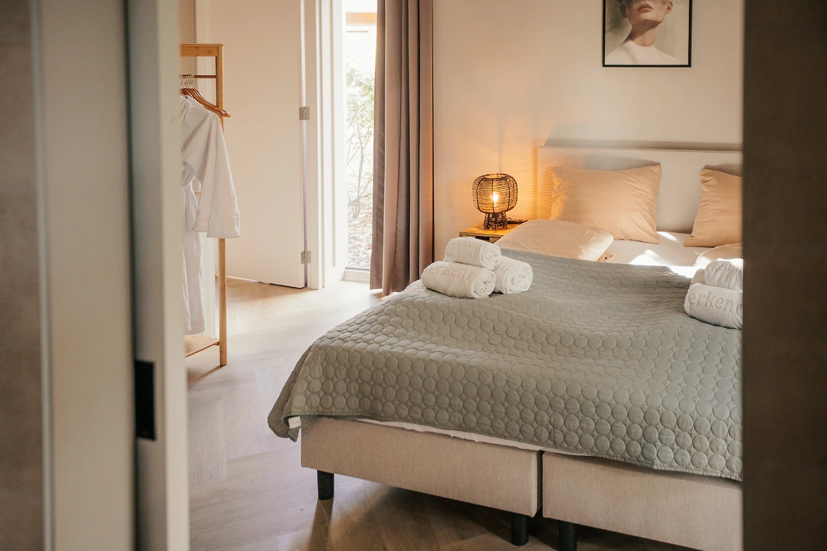 Das Hauptschlafzimmer ist mit luxuriösen Hespera-Betten ausgestattet, die für einen erholsamen Schlaf sorgen.
