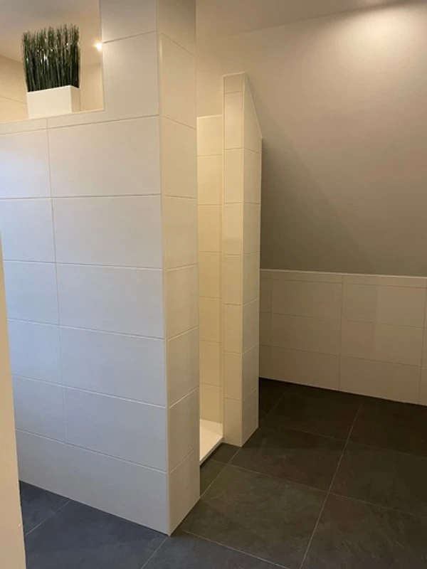 Bad: Ein modernes Badezimmer mit Dusche und WC.