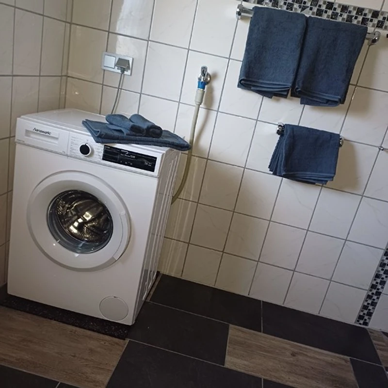 In einem kleinen Abstellraum finden Sie Haushaltszubehör z.B. Wäscheständer, Staubsauger. Waschmaschine und WLAN stehen Ihnen kostenfrei zur Verfügung.