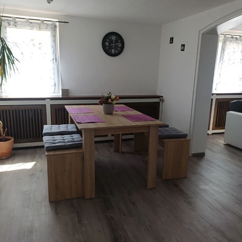 Sie besteht aus 2 Schlafzimmern mit einem Doppelbett und 2 Einzelbetten, einem gemütlichen Wohn- und Esszimmer mit Blick auf die Geroldseck, einer grosszügigen gut ausgestatten Küche mit Austritt zum kleinem Balkon. Badzimmer mit Fenster und einer ebenerdiger Dusche sowie Doppelwaschbecken.Unsere Ferienwohnung befindet sich im 1. OG.