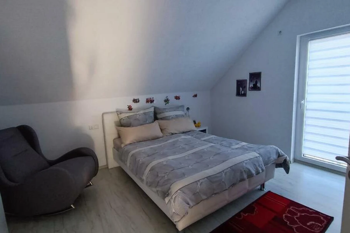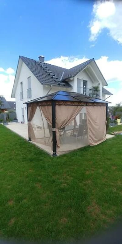Die Ferienwohnung befindet sich im Obergeschoss. Alle Zimmer sind hell und Modern eingerichtet. Auf 60 qm bieten wir ausreichend Platz für bis zu drei Personen. Schlafzimmer mit Boxspringbett (180 cm x 200cm) und TV, Wohnzimmer mit Schlafsofa und grossem Smart TV und Balkon. Wohnküche mit Esstisch und gemütlicher Sitzecke, TV und Zugang zum Balkon. Grosszügiges modernes Badezimmer mit freistehender Wanne und begehbarer Dusche. Alle Zimmer besitzen Fussbodenheizung und natürlich eine Internetverbindung über WLAN. Raus ins Grüne Im Garten lädt der gemütliche Pavillon zum grillen und entspannen ein. Unsere Ferienwohnung Maria Buch heisst Sie herzlich willkommen. Planen Sie Ihren nächsten Urlaub in unserer Ferienwohnung und erleben Sie die Schönheit des Härtsfelds. Der Kurbeitrag ist bei Anreise in bar zu entrichten. Die Bettwäsche und Handtücher sind bereits im MIetpreis enthalten. Ihren Hund dürfen Sie gegen Gebühr gerne mitbringen.