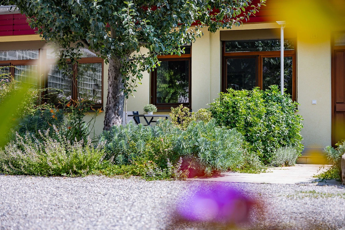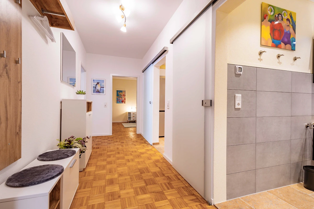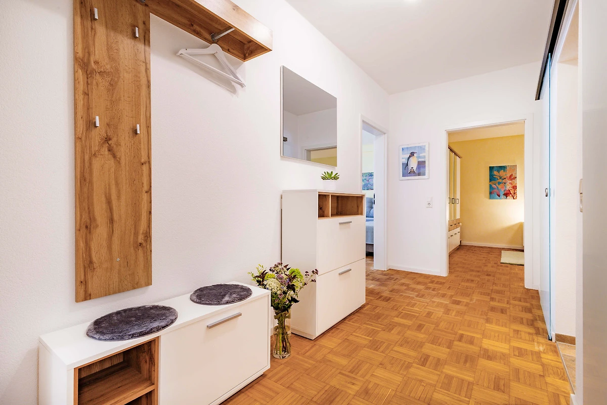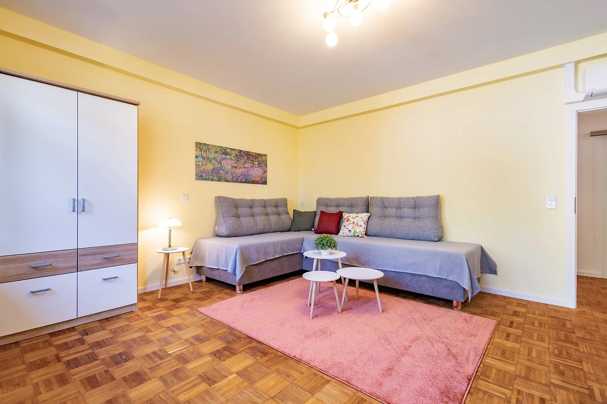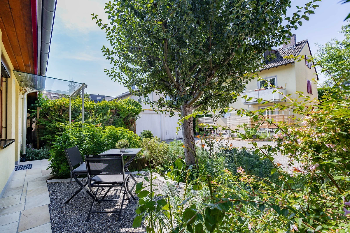 Geschmackvoll und komfortabel eingerichtet, punktet unsere Unterkunft mit einer idyllischen und zentrumsnahen Lage mit ebenerdigen begrünten Innenhof und einem sehr guten Anschluss an den ÖPNV, sowie an das städtische Radwegenetz und die Rheintal-Autobahn A 5.