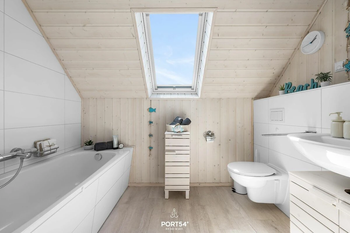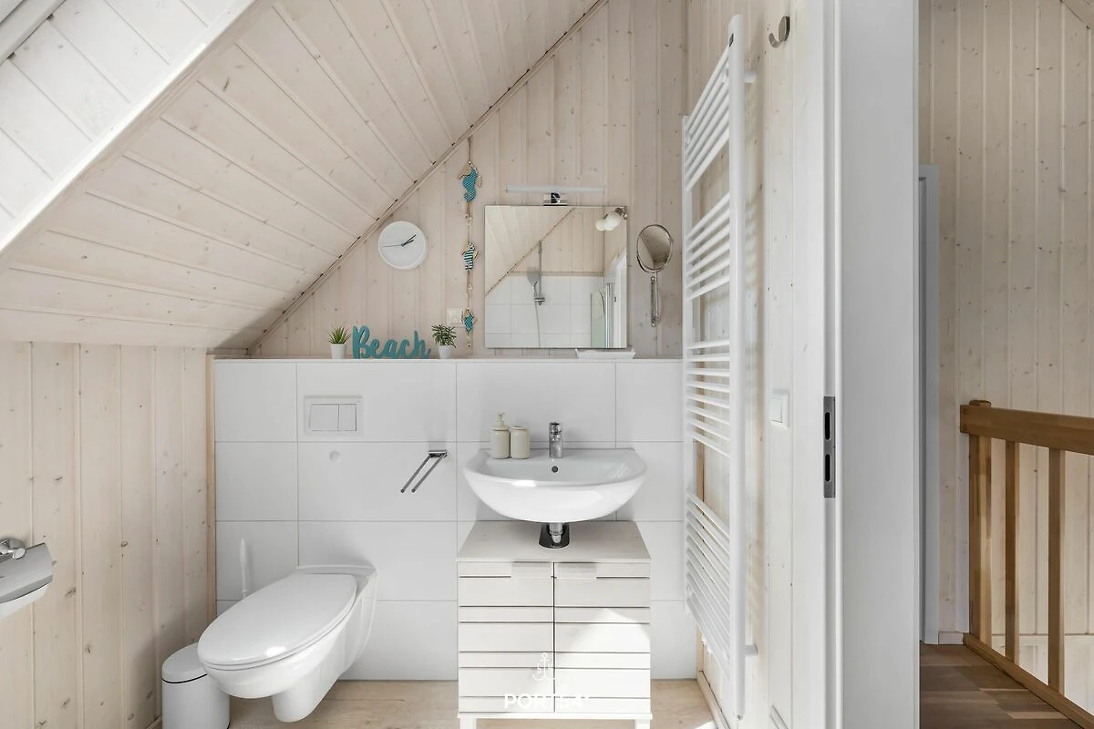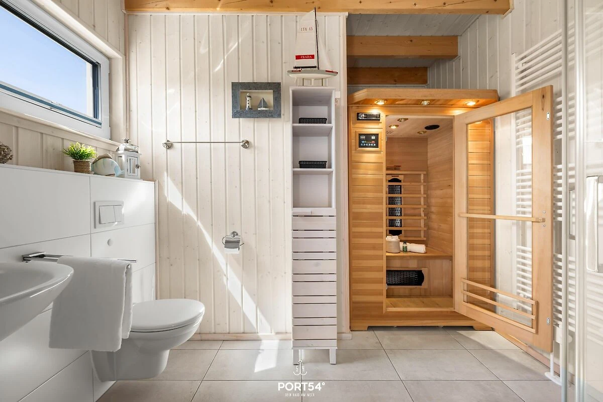 Willkommen im Ferienhaus "Meerweh" – Ihr idyllischer Rückzugsort für einen unvergesslichen Urlaub an der Küste! Dieses freistehende Ferienhaus bietet Ihnen auf großzügigen 82m² ein wahres Zuhause auf Zeit, in dem keine Wünsche offen bleiben. Bereits beim Betreten des Hauses werden Sie vom einladenden, offenen Wohn-/Essbereich begeistert sein. Hier treffen Komfort und Gemütlichkeit aufeinander. Entspannen Sie sich vor dem prasselnden Kaminfeuer und genießen Sie den Klang der hochwertigen Stereoanlage und des Subwoofers für den TV. An heißen Sommertagen sorgen zwei Turmventilatoren im Wohnzimmer für eine angenehme Erfrischung und kühle Brisen. Das Ferienhaus verfügt über drei geschmackvoll eingerichtete Zimmer, darunter zwei behagliche Schlafzimmer. Das erste Schlafzimmer erwartet Sie mit einem großzügigen Doppelbett (180x200cm), einem geräumigen Kleiderschrank, einem Smart-TV und einer weiteren Stereoanlage – ideal für entspannte Stunden vor dem Schlafengehen. Im zweiten Schlafzimmer finden Sie ein Doppelbett (140x200cm) und zwei Einzelbetten (je 90x200cm) sowie einen Smart-TV. Beide Schlafzimmer sind mit Verdunkelungsmöglichkeiten, Insektenschutz als auch jeweils mit einem Turmventilator für warme Sommertage ausgestattet, sodass Sie ungestört schlafen können. Die beiden modernen Badezimmer lassen keine Wünsche offen. Im Erdgeschoss erwartet Sie ein wahres Wellness-Erlebnis: Eine luxuriöse Dusche mit Regendusche, ein Föhn, ein WC und ein beleuchteter Spiegel. Das Highlight ist die Infrarotsauna, die für wohltuende Entspannung sorgt. Genießen Sie die Wärme der Infrarotstrahlen und gönnen sich eine kleine Auszeit. Ein Handtuchheizkörper und ein Radio sorgen für zusätzlichen Komfort, während das Fenster mit Sichtschutz Privatsphäre garantiert. Im Badezimmer im Obergeschoss finden Sie eine Duschwanne, ein WC, einen beleuchteten Spiegel und ein Dachfenster mit Sichtschutz. Die voll ausgestattete Küche lädt zum kulinarischen Experimentieren ein. Neben Spülmaschine, Ceranfeld, Backofen und Mikrowelle stehen Ihnen alle nötigen Küchenutensilien zur Verfügung, um leckere Gerichte zu zaubern. Draußen erwartet Sie eine einladende Terrasse mit komfortablen Outdoormöbeln und einer Sonnenliege. Dank Sicht- und Windschutz auf beiden Seiten der Terrasse können Sie hier ungestört relaxen und die frische Meeresluft genießen. Ein Fahrradständer und ein abschließbarer Fahrradschuppen stehen für Ihre mitgebrachten oder beim Tourguide gemieteten Fahrräder bereit, sodass Sie die Umgebung bequem erkunden können. Für gesellige Grillabende ist auch ein Holzkohlegrill vorhanden. Ein Parkplatz direkt am Haus rundet das Angebot ab. Erleben Sie unvergessliche Urlaubstage im Ferienhaus "Meerweh" – hier wird Komfort großgeschrieben, und Sie können sich rundum wohlfühlen! Das Haus wird für 6 Personen angeboten.
