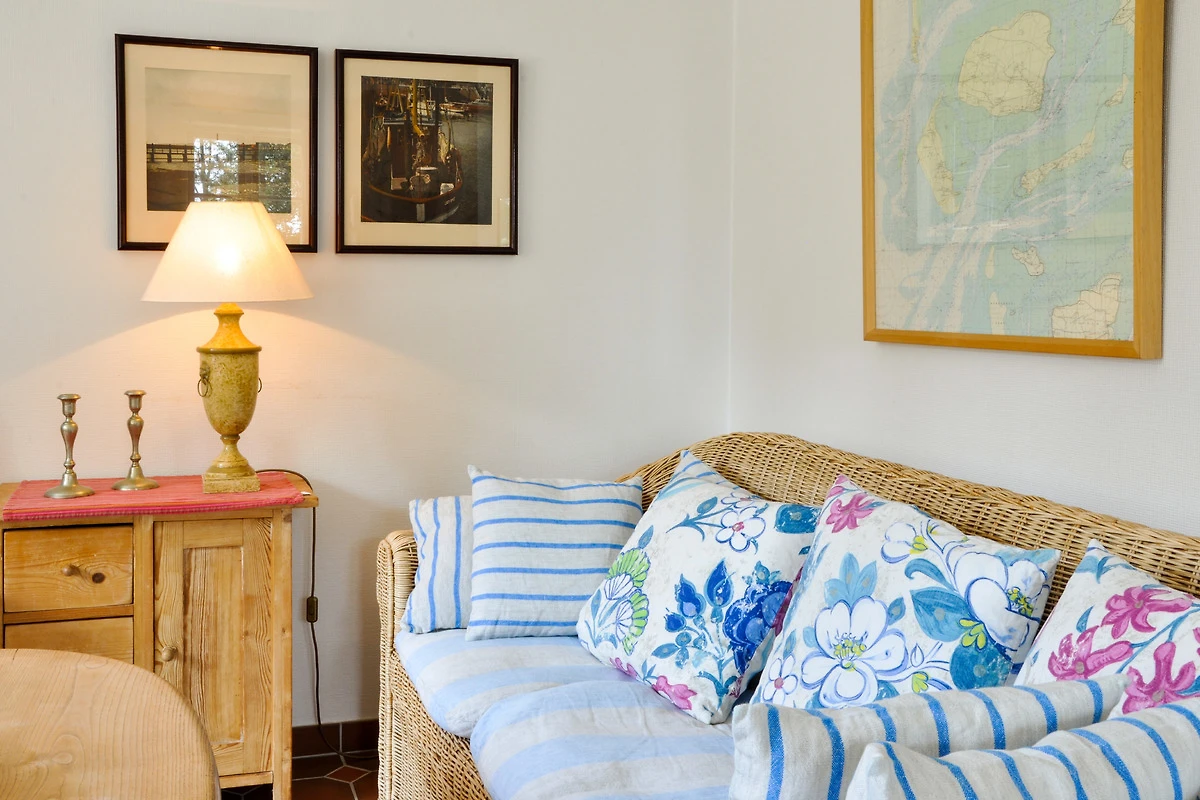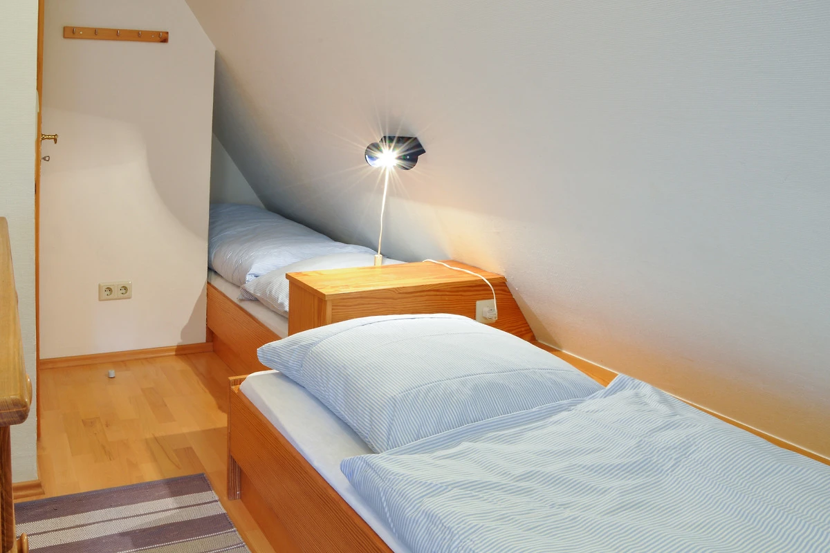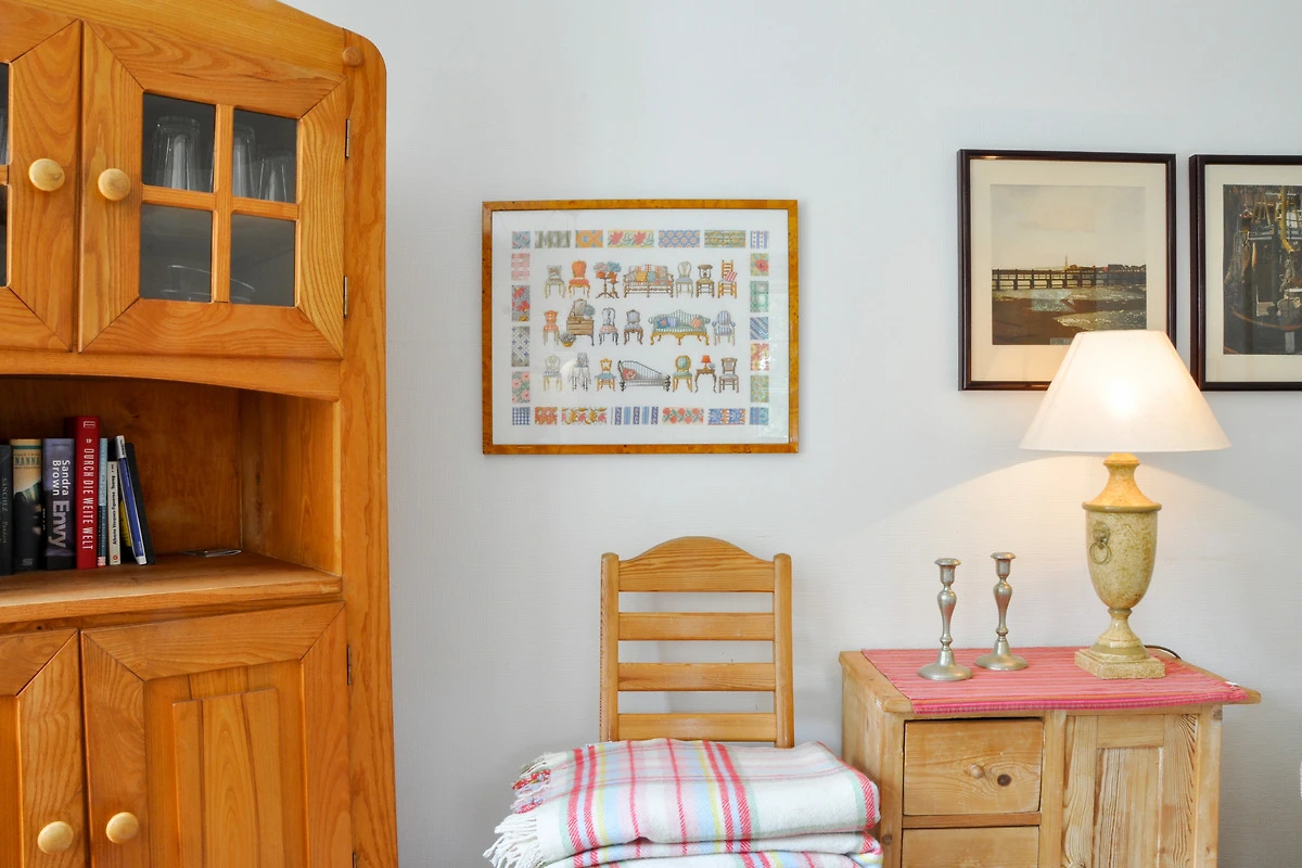 Die Wohnung Lena bietet auf ca. 60 m2 Wohnfläche Platz für bis zu 4 Personen. Sie unterteilt sich in einen gemütlichen Wohn- Essbereich mit integrierter Küche (mit Geschirrspülmaschine und Mikrowelle) im Erdgeschoss und 2 Schlafräumen im 1. Stock des Hauses. Das Badezimmer mit Dusche befindet sich im Erdgeschoss. Eine Terrasse mit Strandkorb, Tisch & Stühlen lädt zum entspannen ein.