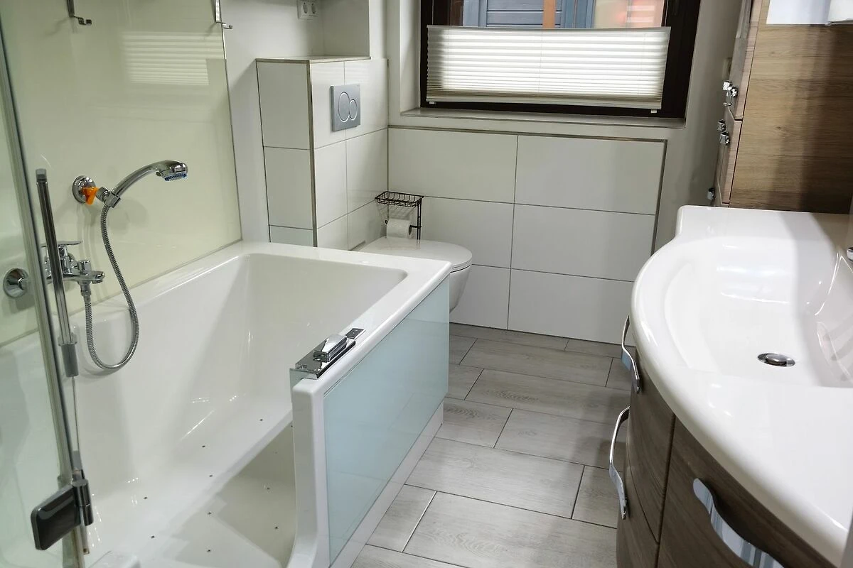 Geniessen Sie an kälteren Tagen die Infrarotsauna oder die begehbare Artweger Badewanne mit Dusche im neu renovierten Bad, mit Beleuchtung und Whirpoolfunktion.