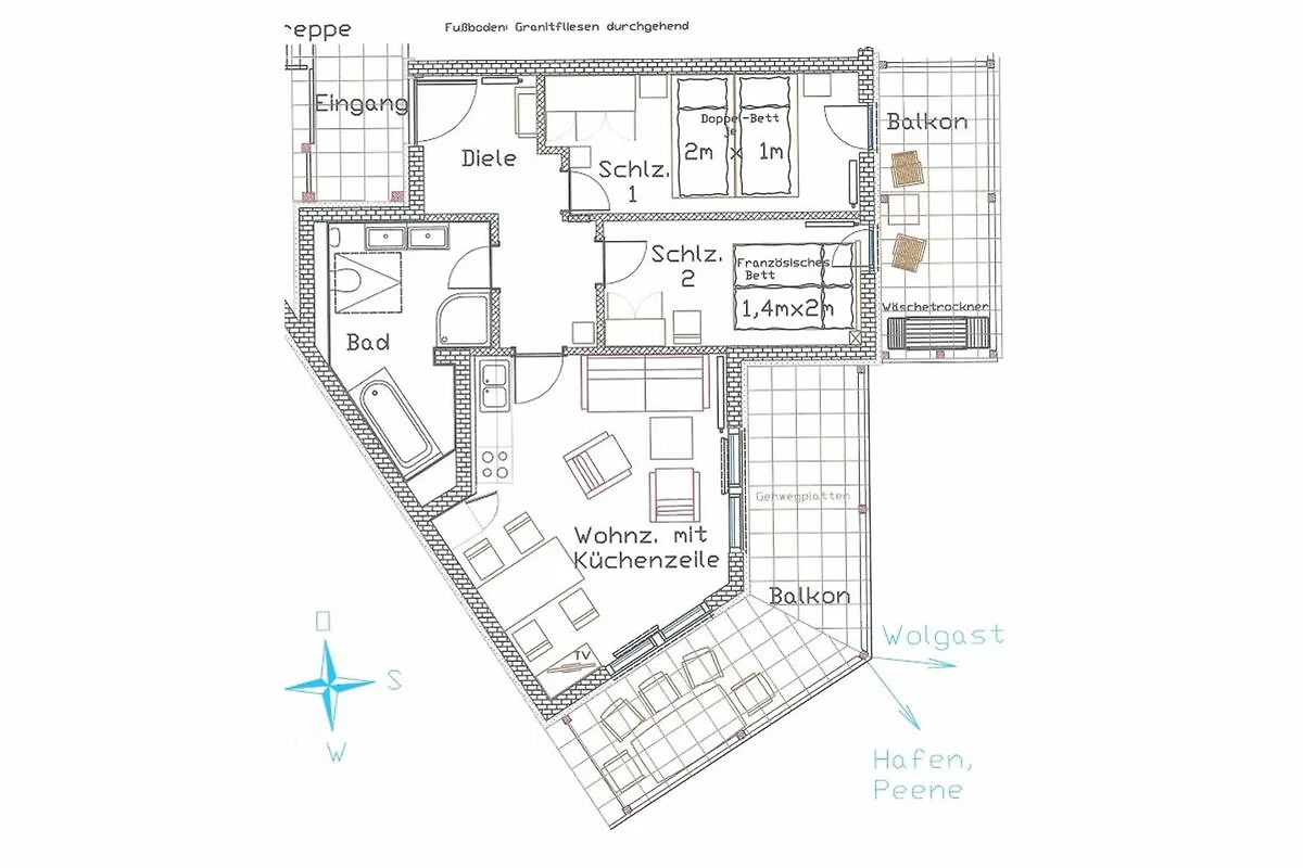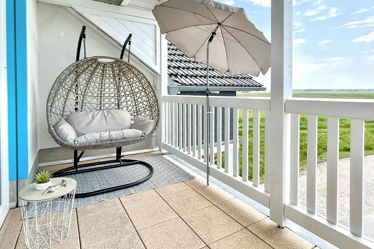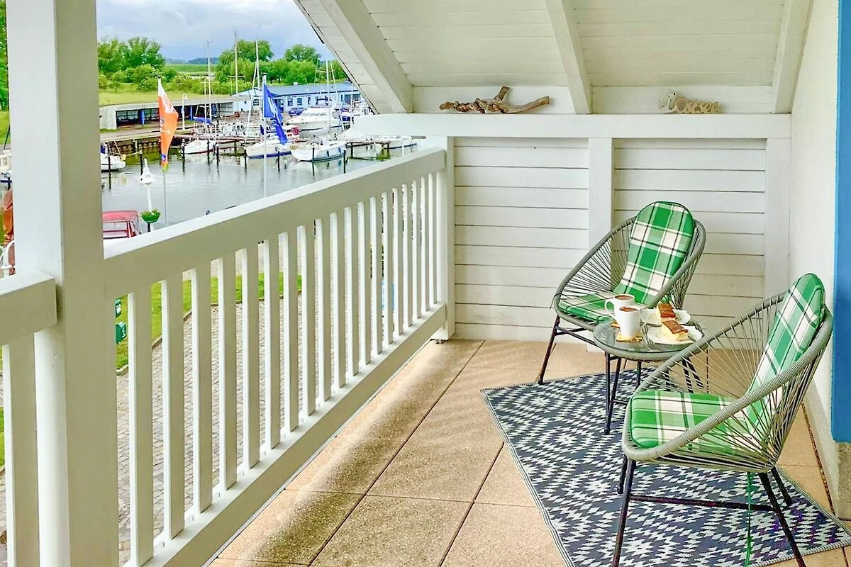 Sie haben zwei Balkone (Süd- und Westrichtung), auf denen Sie sowohl einen einzigartigen Blick auf die Peenewiesen sowie den Sonnenuntergang über dem Yachthafen geniessen können.