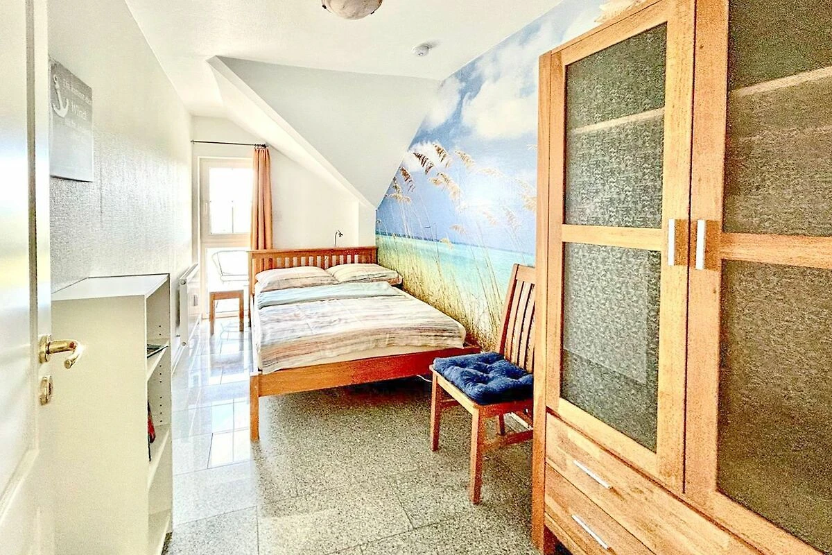 Das kleine Schlafzimmer verfügt über ein weiteres 1,40m breites Bett sowie einen Kleiderschrank.
