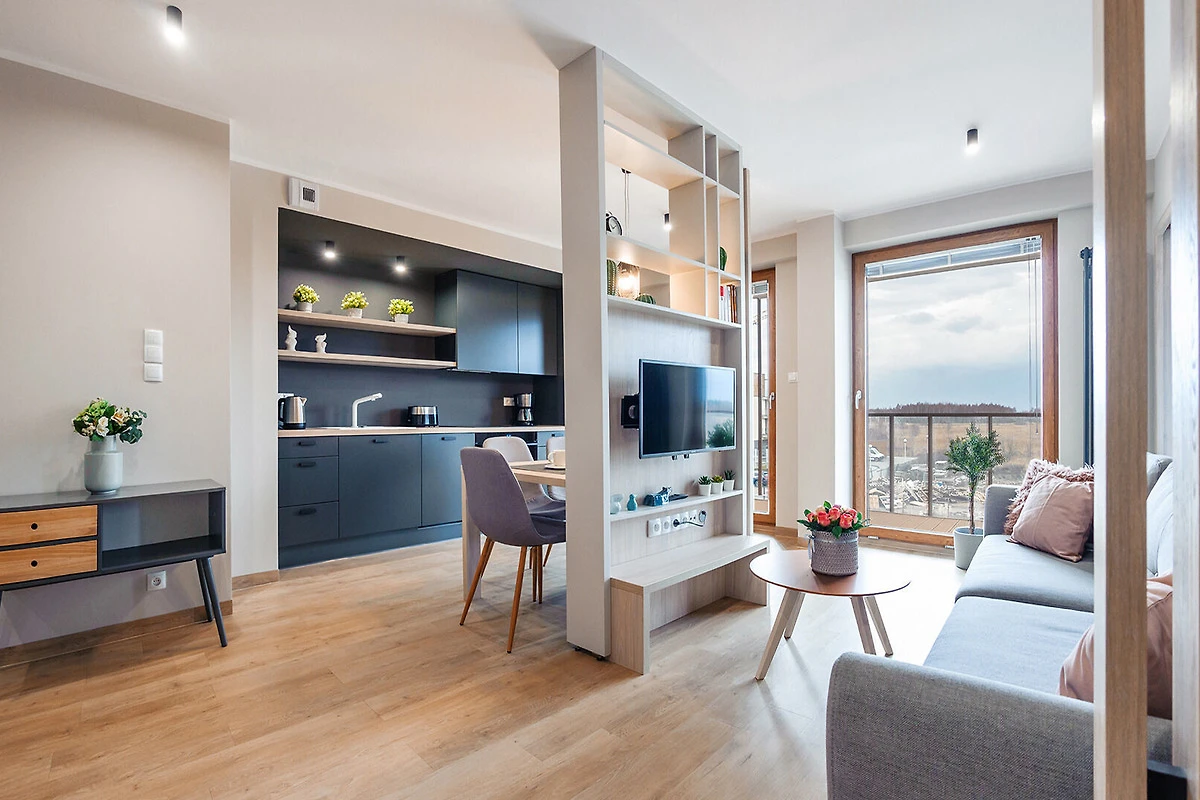 • Haustiere sind in der ausgewählten Wohnung erlaubt. Die Kosten für den Aufenthalt mit einem Haustier betragen 40 PLN pro Tag.