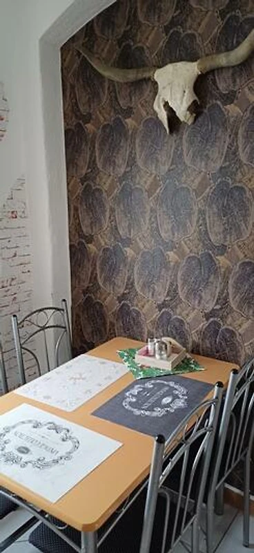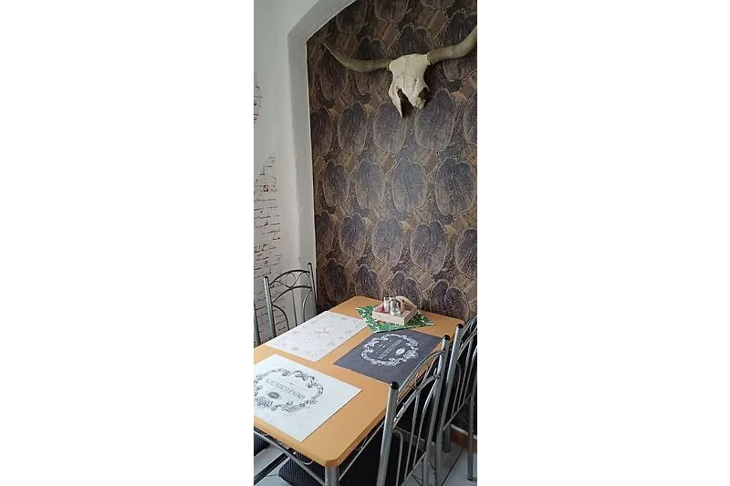 Unsere schöne EG- Ferienwohnung Brandy ist modern und zeitgemäss eingerichtet. Sie verfügt über einen kombinierten Wohn-Schlafbereich mit einem grossen Boxspringbett. Flachbild-TV und einer Wohncouch ausgestattet. Die separate Küche ist gut ausgestattet und verfügt über einen Esstisch und vier Stühlen. Ein Parkplatz befindet sich direkt auf dem Grundstück. Internet via W-LAN nutzen Sie bei uns kostenlos. Das Badezimmer ist mit einer ebenerdigen Dusche und Badewanne und einem Föhn ausgestattet. Eine Gaststätte befindet sich direkt im Nebenhaus. Wir freuen uns auf Ihre Reservierung.