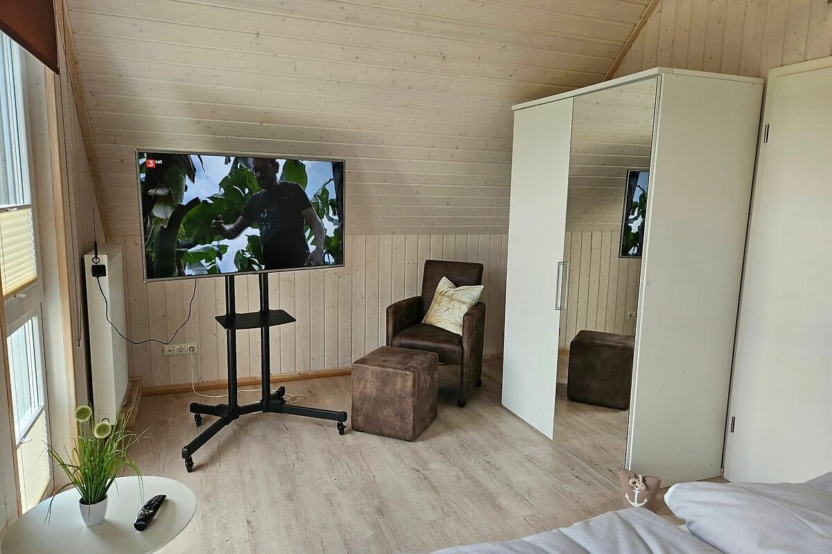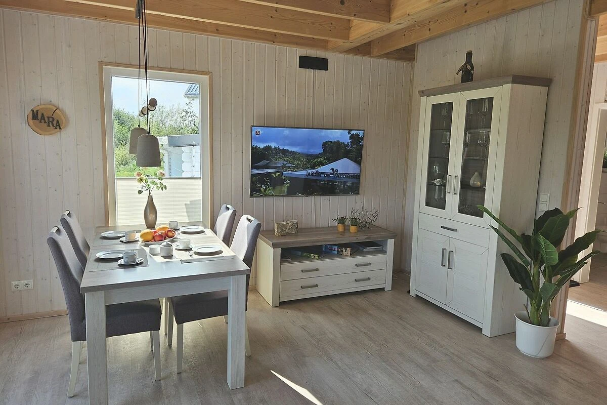Willkommen im Ferienhaus "Mara". In bester Lage am Süd-Rand des Ostseeresorts Olpenitz erwartet Sie das komfortable Ferienhaus auf über zwei Etagen. Es liegt direkt an einem kleinen Teich und nur einen kurzen Spaziergang vom traumhaft schönen Sandstrand der Ostsee entfernt. Auch der Yachthafen von Olpenitz mit seinem bunten Treiben ist direkt um die Ecke. Das Ferienhaus ist sehr gemütlich, hell und modern eingerichtet. Vom Schlafzimmer oben haben Sie Meer-Blick und erleben morgens den Sonnenaufgang. Auf der Terrasse können Sie den Blick über den kleinen See schweifen lassen, die Sonne auf hochwertigen Gartenmöbeln genießen oder einen entspannten Grillabend mit Ihren Lieben verbringen. In der Infrarot-Wärmekabine können Sie es sich an kalten Tagen nach einem langen Strandspaziergang gemütlich machen und anschließend vor dem Kaminofen im Wohnzimmer entspannen, Gesellschaftsspiele ausprobieren oder die Vorzüge der 2 modernen Smart-TVs nutzen.