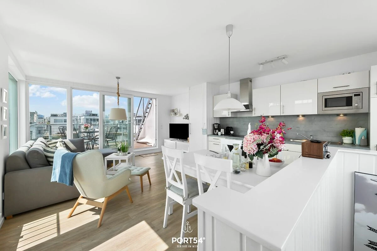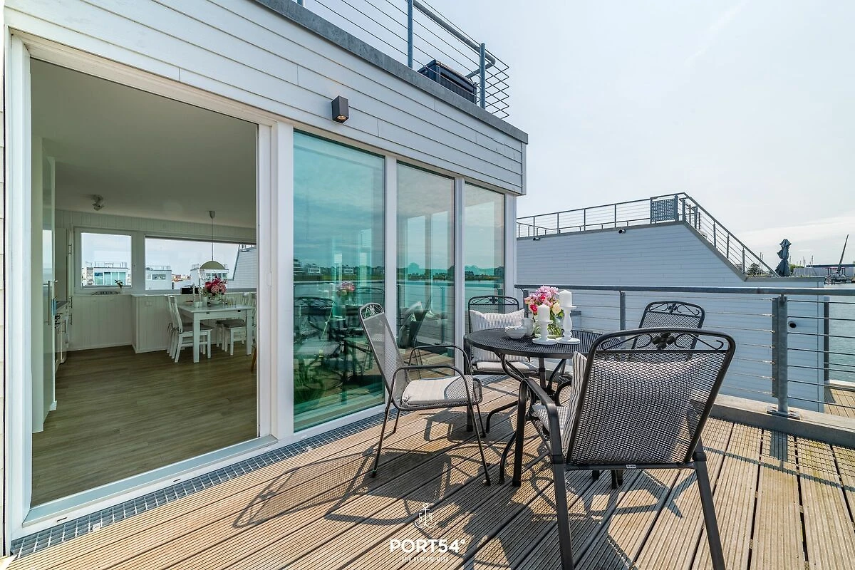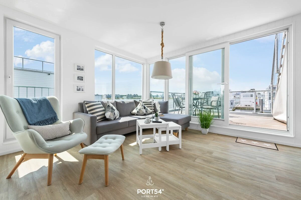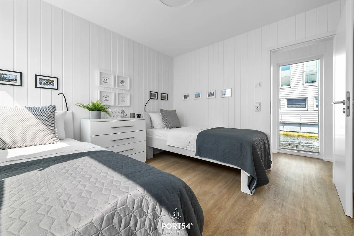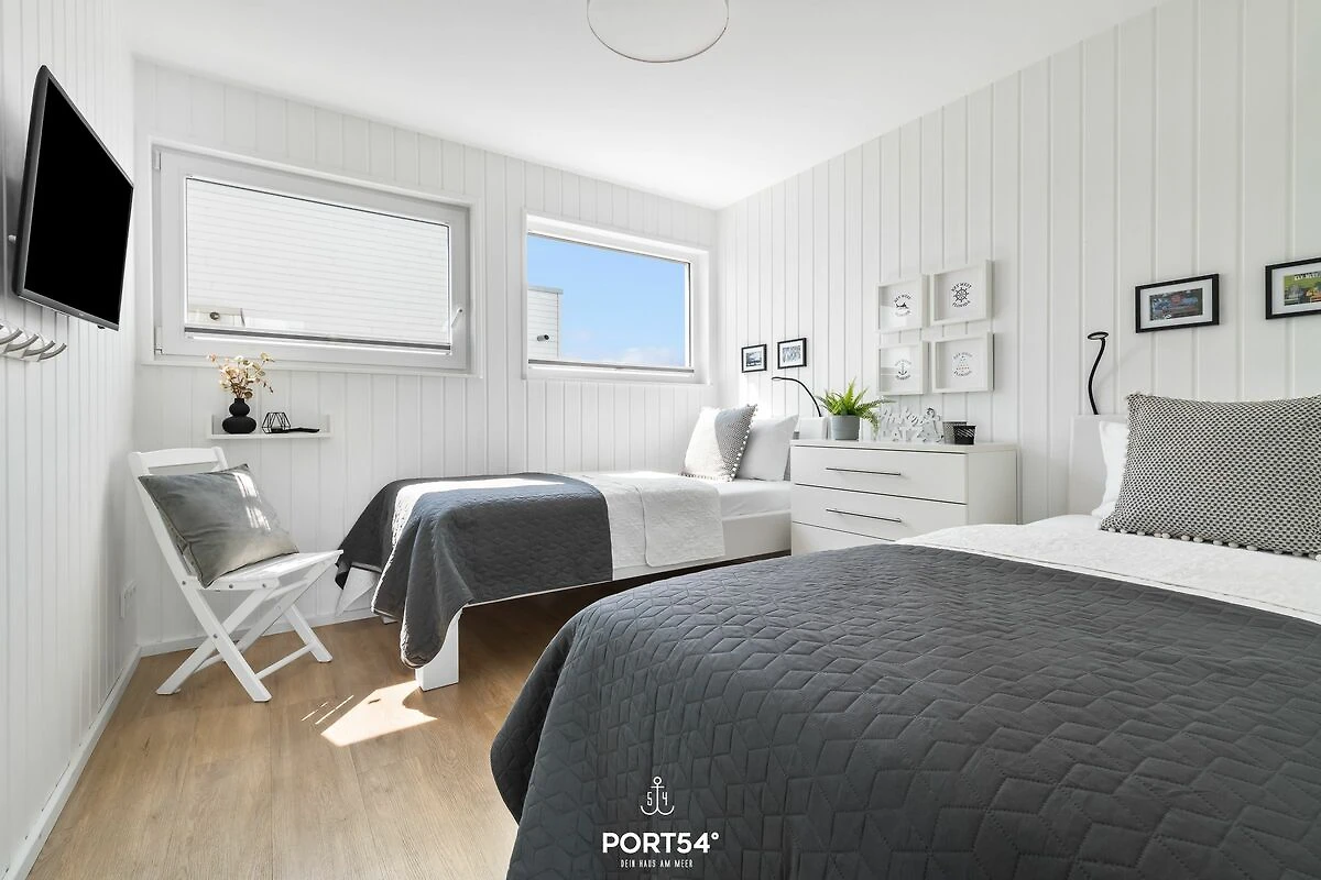 Erleben Sie den ultimativen Urlaub an der Ostsee in dem einzigartigen Ferienhaus "Key West" – ein schwimmendes Haus, das keine Wünsche offenlässt! Genießen Sie das besondere Flair und das sanfte Schaukeln des Wassers direkt unter Ihnen. Unser Ferienhaus "Key West" verfügt über 2 gemütliche Schlafzimmer, in denen Sie komfortabel schlafen und mit dem beruhigenden Klang der Wellen aufwachen. Das eine Schlafzimmer bietet ein Doppelbett (180x200cm), einen Kleiderschrank und einen Zugang zur Terrasse. Im dem anderen Schlafzimmer befinden sich zwei Einzelbetten (90x200cm). Beide Schlafzimmer sind zusätzlich mit einem Flachbild-Fernseher und Verdunkelungsmöglichkeiten ausgestattet. Entspannen Sie in Ihrer eigenen Sauna und lassen Sie den Alltag hinter sich. Das Tageslichtbad überzeugt mit einer Dusche, einem Kosmetikspiegel, einem Fön und einem Handtuchheizkörper. Der offene Wohn-/Essbereich im Obergeschoss bietet einen großzügigen Raum für gesellige Abende mit Familie und Freunden. Verbringen Sie lustige Spieleabende an der hauseigenen Playstation, oder verbringen Sie einen gemütlichen Filmeabend auf dem Sofa. Atmen Sie die frische Seeluft auf der Panorama Terrasse ein und genießen Sie den atemberaubenden Wasserblick. Egal wo Sie sich befinden, Sie haben stets einen wunderbaren Blick aufs Wasser. Die offene Küche ist voll ausgestattet und lässt keine Wüsche offen. Machen Sie es sich in gemütlichen Lounge auf der Dachterrasse bequem und lassen Sie die Seele baumeln. Für die Kleinen stehen ein Kinderreisebett, eine Hochstuhl und ein Kindertritthocker bereit. Das Ferienhaus "Key West" liegt im idyllischen Olpenitz, nur wenige Schritte vom Strand entfernt. Hier finden Sie die perfekte Kombination aus Entspannung und Abenteuer. Erkunden Sie die Umgebung, genießen Sie Wassersport oder lassen Sie einfach die Seele baumeln. Gönnen Sie sich eine Auszeit in unserem Ferienhaus und erleben Sie einen unvergesslichen Urlaub auf dem Wasser. Wir freuen uns darauf, Sie bald bei uns willkommen zu heißen!