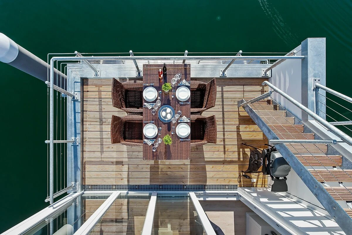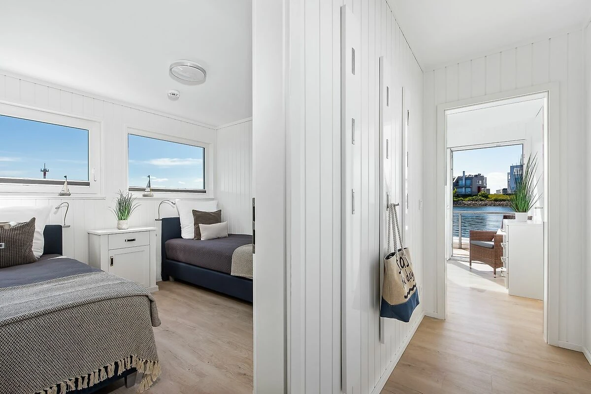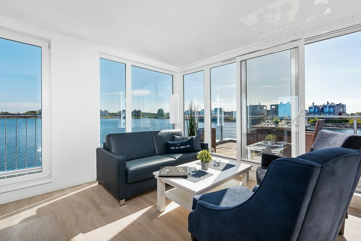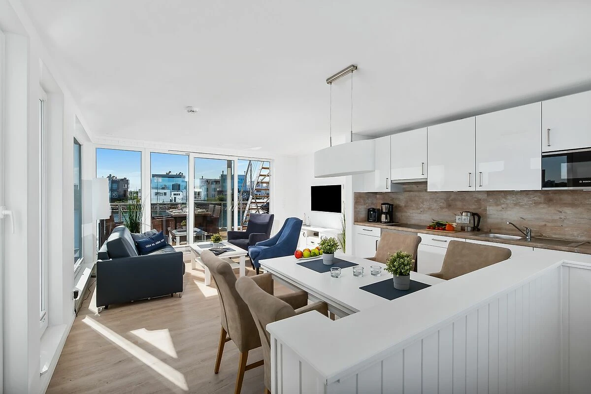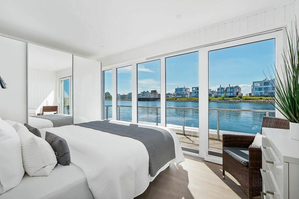 Willkommen an Bord – Ihr Ostsee-Urlaub startet jetzt im schwimmenden Ferienhaus "Blau im Meer"! Auf großzügigen 97m² erwartet Sie ein Wohlfühlparadies, das keine Wünsche offenlässt. Ein lichtdurchfluteter Wohn- und Essbereich, zwei traumhafte Schlafzimmer, ein modernes Badezimmer und eine Dachterrasse, die Ihnen einen atemberaubenden 360-Grad-Panoramablick aufs Wasser bietet. Machen Sie es sich im gemütlichen Wohnbereich bequem und lassen Sie den Tag bei einer fesselnden Serie oder einem guten Buch entspannt ausklingen. Die voll ausgestattete Küche lädt dazu ein, kulinarische Meisterwerke zu zaubern, und am Esstisch können Sie gesellige Spieleabende verbringen – die hauseigenen Spiele stehen schon bereit! Die beiden Schlafzimmer sind wahre Wohlfühloasen. Das erste Zimmer bietet Ihnen zwei komfortable Boxspring-Einzelbetten (je 100x200cm), Verdunkelungsmöglichkeiten und einen Flachbildfernseher. Im zweiten Schlafzimmer erwartet Sie ein großzügiges Boxspring-Doppelbett (180x200cm), Verdunkelungsmöglichkeiten und ein Kleiderschrank. Von hier aus können Sie direkt auf die Terrasse treten und den Blick über das Wasser genießen – starten Sie den Tag mit einer Tasse Kaffee und dieser grandiosen Aussicht! Falls Freunde oder Familie bei Ihnen übernachten möchten, verwandelt sich das Sofa im Wohnbereich im Handumdrehen in einen bequemen Schlafplatz. Das moderne Badezimmer bietet alles, was Sie für Ihr Wohlbefinden brauchen – eine ebenerdige Dusche, einen Handtuchheizkörper und einen Föhn. Sogar eine Finnische Sauna befindet sich im Haus, die Wellness pur verspricht. Die Krönung des Ganzen ist die spektakuläre Dachterrasse. Hier erleben Sie unvergessliche Momente bei traumhaften Sonnenuntergängen, ob Sie über das Hafenbecken und die Marina des OstseeResorts blicken oder den Blick über die Ostsee und Schleimünde schweifen lassen. Sonnige Tage laden zu ausgedehnten Sonnenbädern und entspannten Grillabenden ein. Seefahrer aufgepasst: Direkt am Haus erwartet Sie ein eigener Liegeplatz mit Zugang zu Strom und Wasser sowie eine Badeleiter. Für Autofahrer steht ein kostenfreier Stellplatz direkt am Steg bereit. Ihr unvergesslicher Traumurlaub beginnt hier und jetzt – willkommen im "Blau im Meer"!