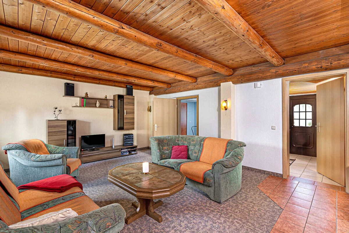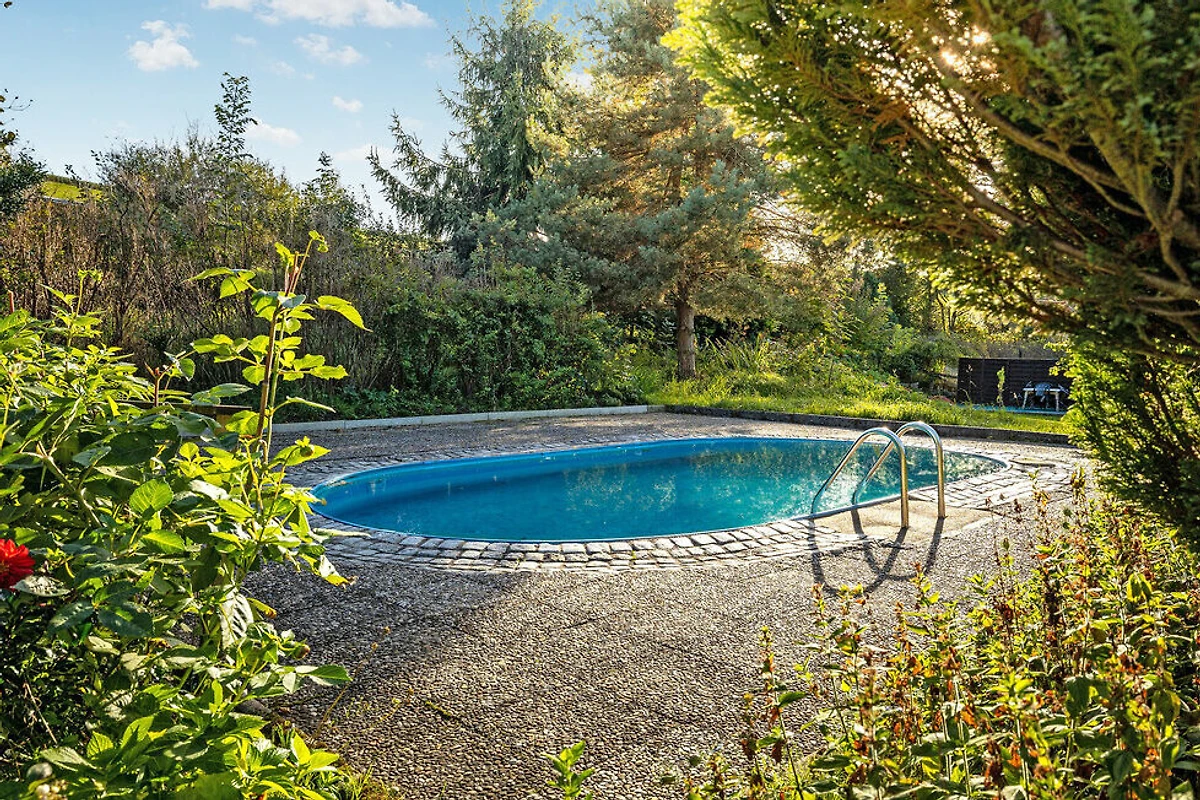 Unser Ferienhaus hat 80m² Wohnfläche: 2 Schlafräume, 1 Küche mit Sitzecke, 1 Bad mit Wanne, Dusche, WC, Waschbecken, Spiegel, grossen Wohnbereich mit Kaminofen, TV, einen Vorraum, Balkon, Terrasse, im Garten Spielplatz (Sandkasten, Schaukel, Rutsche, Trampolin) Grill-Ecke, Feuerstelle, Aussen-Pool, am Pool sind im Garten Liegeflächen, Schlafraum: Zwei Einzelbetten Schlafraum: Doppelbett mit Kinderbett und Beistellbett, Küche: Geschirrspüler, Kühl-/Gefrierschrank, Gefrierwürfel. Balkon ist überdacht, wo auch geraucht werden kann. Bettwäsche und Handtücher sind im Preis enthalten.