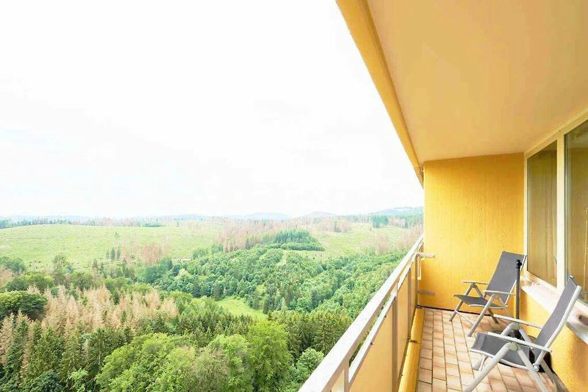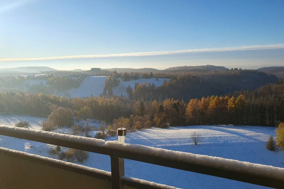 Unsere modern und zeitgemäss eingerichtete Ferienwohnung Fernblick Hohegeiss liegt in der obersten 16. Etage und besticht mit seinem fantastischen Ausblick über den Harz in bester Südlage, im zweiten von zwei Appartementhäusern, direkt am schönen Kurpark! Die schicke Wohnung wurde 2021 vollständig renoviert und neu eingerichtet. Es befindet sich seit Dezember 2022 ein neuer elektr. Wandkamin für eine erholsame Auszeit im Wohnzimmer. Das Haus verfügt über zwei Fahrstühle. Der Wohnbereich (49qm) im 16. OG ist mit offener, heller Küche versehen. Ein Schlafzimmer mit einem Doppelbett (180 cm x 195 cm) inkl. 32 Zoll Smart-TV und Einbauschrank, sowie ein zweites Schlafzimmer mit Etagenbett (90 x 195 cm ) stehen zur Verfügung. Die Schlafräume und das Bad sind mit hellen Türen versehen. Das Badezimmer ist mit Regendusche, Handbrause, WC und Waschbecken. Die offene Küche ist vollständig ausgestattet inkl. Cerankochfeld, Backofen, Kühlschrank, Mikrowelle, Spülmaschine und weiteren diversen elektr. Geräten ( Wasserkocher, Eierkocher, Toaster, Kaffeemaschine, Milchaufschäumer und Tassimo ) Ein sonniger Balkon in bester Südlage und Gartenmöbel stehen für Sie bereit. Im Wohnzimmer befindet sich eine moderne Wohncouch inkl. ausschwenkbaren 55 Zoll Smart-TV und eine Esstischgruppe. Geniessen Sie Ihren Aufenthalt bei uns. In unserer Ferienanlage befinden sich eine Kegel- Bowlingbahn und div. Snack-Automaten. Ausserdem für Freizeit und Spass... Tischkicker, Airhokey, Tisch Billard und ein Dartautomat. Im Untergeschoss befindet sich eine Tischtennisplatte. Desweiteren im Untergeschoss befinden sich Waschmaschinen und Trockner. Münzen dafür erhältlich am Hallenbad. Ein kostenloses Hallenbad (Kurkarte/Gästekarte erforderlich) und Sauna (extra Gebühr) befinden sich direkt im Objekt. Mini-Golfanlage, ein Kinderspielplatz und Rodelbahn direkt am Haus vorhanden. In 300 m befindet sich das Ski/Loipennetz und Rodelgebiet mit Schlepp/Liftanlagen, dass bequem in Hohegeiss erreichbar ist. Natürlich stehen Ihnen kostenlose öffentliche PKW-Stellplätze zur Verfügung. WLAN in der Ferienwohnung ist kostenlos. Der Kurbeitrag ist in der Buchung enthalten. Kontaktloser Check-in und Check-out! Wir freuen uns auf Sie ! Da das System umgestellt wurde, konnten leider keine Bewertungen übertragen werden. Daher noch als Bild die älteren Bewertungseinträge. Bitte bringen Sie sich die Bettwäsche und Handtücher für Ihren Aufenthalt selbst mit.