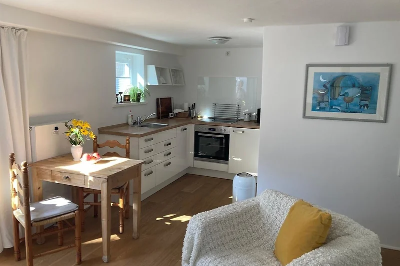 Die Ausstattung der Räume ist modern und geschmackvoll; der Fussboden besteht aus Eichenbohlen.