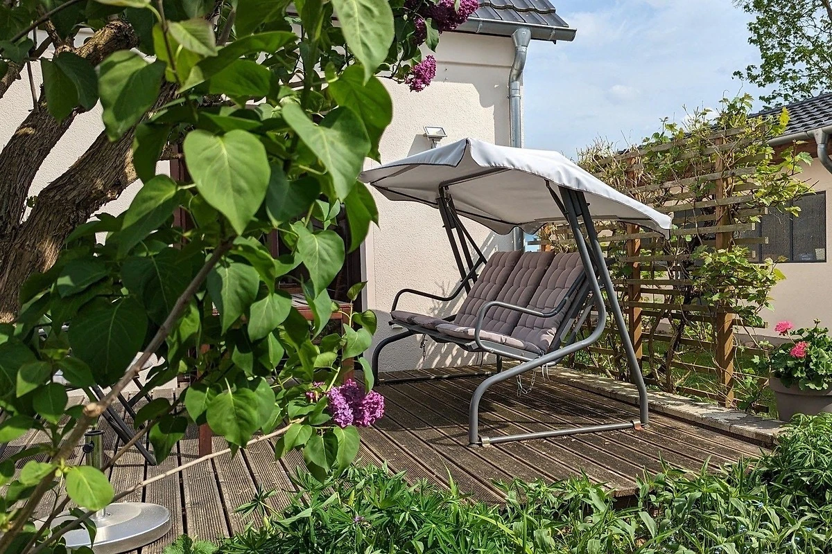 Die Ferienwohnung bietet einen privaten Aussenbereich mit einer einladenden Terrasse und einem eigenen Garten, ideal zum Entspannen. Gästen stehen bequeme Liegestühle zur Verfügung, während ein Holzkohlegrill für gesellige Grillabende einlädt. Zudem ist eine E-Ladestation für Elektrofahrräder vorhanden, was die Erkundung der Umgebung erleichtert. Ein perfekter Ort für erholsame Stunden im Freien.