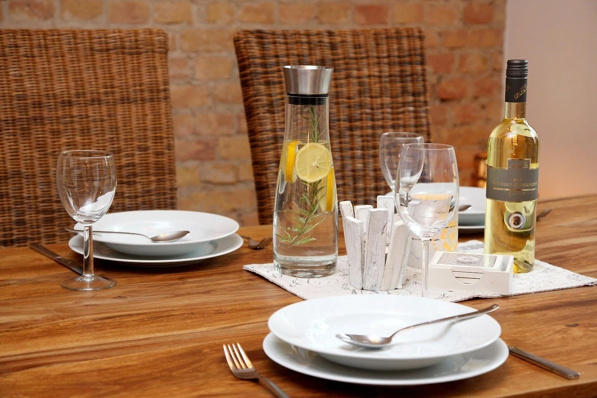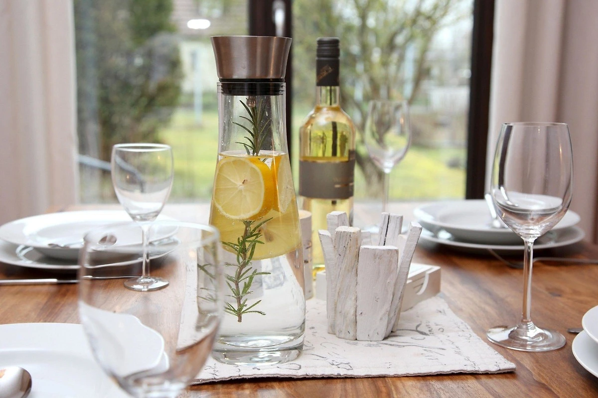 In dieser allergikerfreundlichen Ferienwohnung erwartet die Gäste eine Kombination aus Komfort und modernem Design. Der offene Wohn- und Küchenbereich bietet alles, was für einen entspannten Aufenthalt benötigt wird, darunter einen Elektro-/Gasherd, Backofen, Kühlschrank, Geschirrspüler sowie eine Kaffeemaschine und einen Toaster.