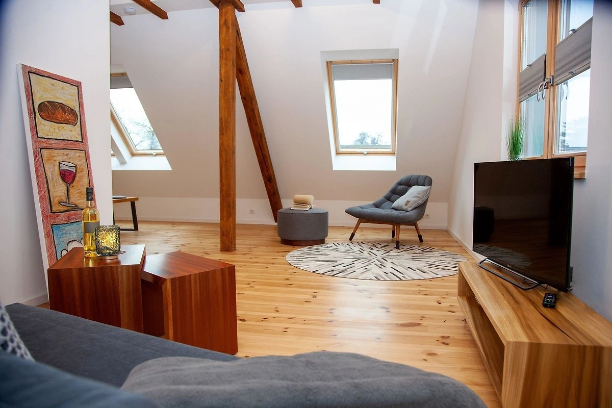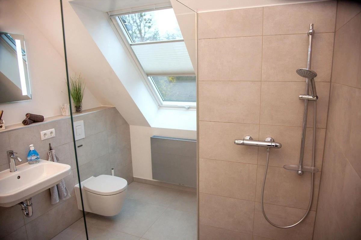 In dieser komfortablen Ferienwohnung erwartet die Gäste eine moderne Ausstattung, die keine Wünsche offenlässt. Der offene Wohnbereich mit einem einladenden Sofa und einem Sessel lädt zum Entspannen ein. Die helle und voll ausgestattete Küche bietet ein Elektro-/Gasherd, eine Mikrowelle, einen Geschirrspüler sowie einen Kühlschrank, was das Kochen zum Vergnügen macht. Ein Esstisch steht bereit, um köstliche Mahlzeiten zu geniessen. Das Schlafzimmer ist mit einem gemütlichen Doppelbett ausgestattet und das Badezimmer punktet mit einer bodengleichen Dusche, einem Fenster und einem Haartrockner. Praktische Annehmlichkeiten wie kostenloses WLAN, eine Kaffeemaschine, Toaster und Wasserkocher sorgen für zusätzlichen Komfort. Die Wohnung ist allergikergeeignet und bietet auch einen Parkplatz. Sicherheitseinrichtungen wie Rauchmelder, ein Erste-Hilfe-Set und ein Feuerlöscher sind ebenfalls vorhanden, sodass man sorgenfrei den Aufenthalt geniessen kann.