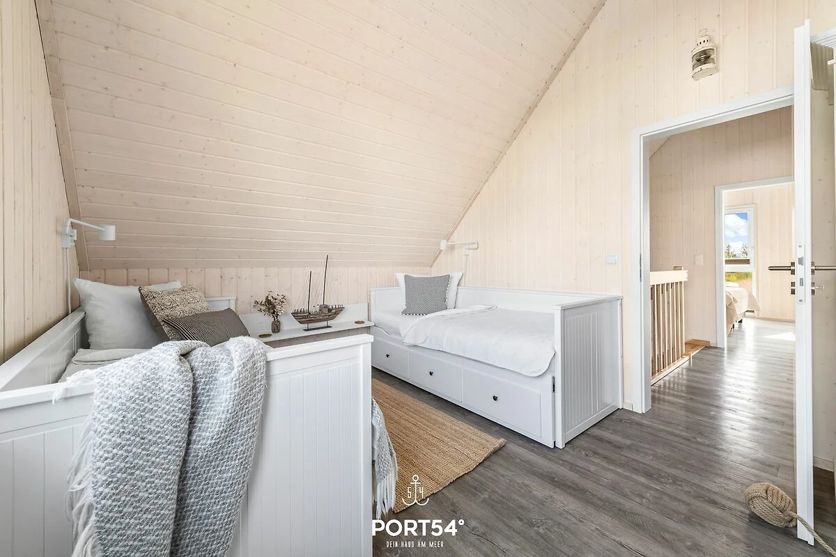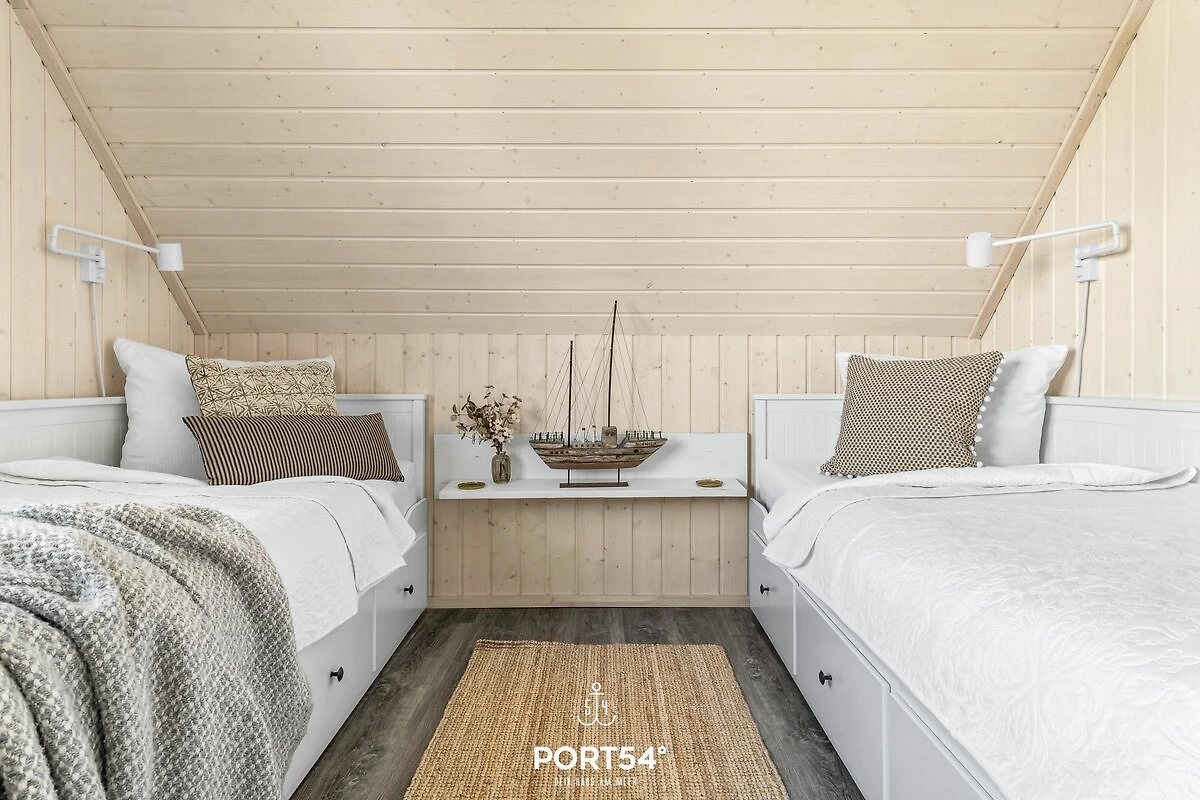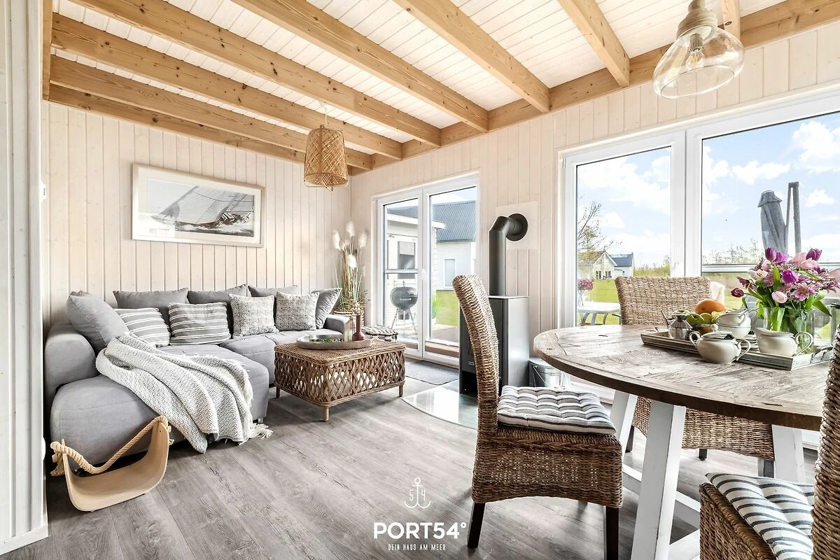 Herzlich Willkommen im "Haus Meerzeit" in Olpenitz. Ihr Feriendomizil besticht durch seine geschmackvolle Einrichtung und die liebevollen Details. Das freistehende Haus verfügt über einen offenen Wohn- und Essbereich, eine Küche, zwei Schlafzimmer und zwei Bäder. Die großen Fenster sorgen für ein lichtdurchflutetes, großzügiges Wohngefühl. Nach langen Strandspaziergängen können Sie auf dem gemütlichen Sofa vor dem Kamin entspannen und Ihre Lieblingsserie auf dem Flachbild-TV schauen. Die Küche bietet alles, was Sie für einen geselligen Kochabend mit der Familie benötigen. Im Obergeschoss finden Sie zwei Schlafzimmer, eins verfügt über ein Doppelbett (180x200cm), das zweite Schlafzimmer ist mit zwei Einzelbetten (90x200cm) ausgestattet. Ein Schlafsofa bietet zwei Kindern weitere Schlafmöglichkeiten. Damit einem erholsamen Schlaf nichts entgegen steht, sind beide Schlafzimmer mit Verdunkelungsmöglichkeiten ausgestattet. Außerdem finden Sie im Obergeschoss ein Badezimmer mit Badewanne zum Relaxen. Zudem befindet sich im Untergeschoss ein zweites Bad mit Dusche und als besonderes Highlight: eine Infrarot-Sauna. An sonnigen Tagen können Sie es sich auf der möblierten Terrasse gemütlich machen und an lauen Sommerabenden im Kreise Ihrer Liebsten den Urlaubsabend ausklingen lassen. Für die Kleinen steht ein Kinderhochstuhl sowie ein Babybett bereit. Für Ihren PKW stehen zwei Stellplätze vor dem Haus zur Verfügung. Das Haus wird für 4 Erwachsene und 2 Kinder angeboten.