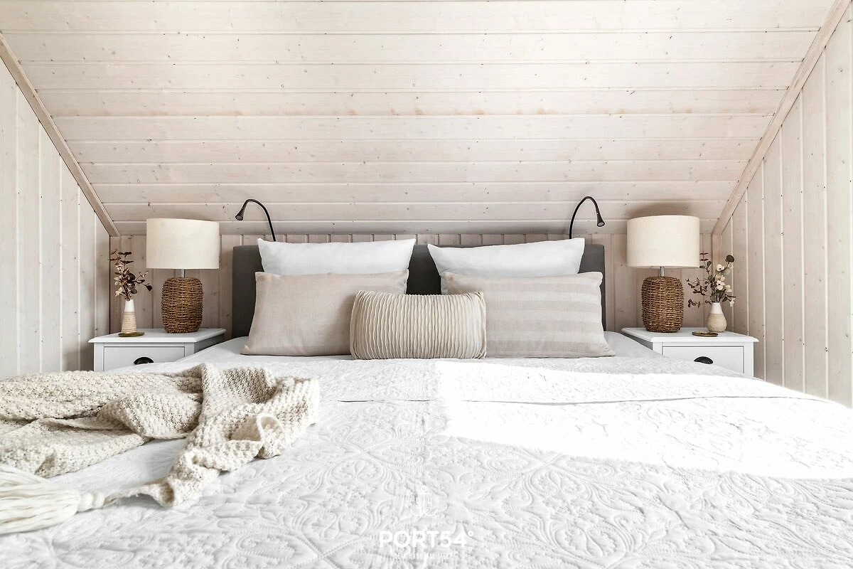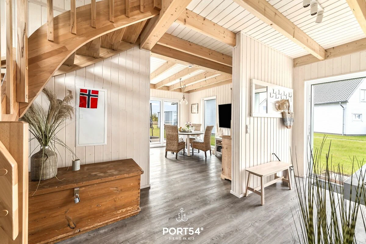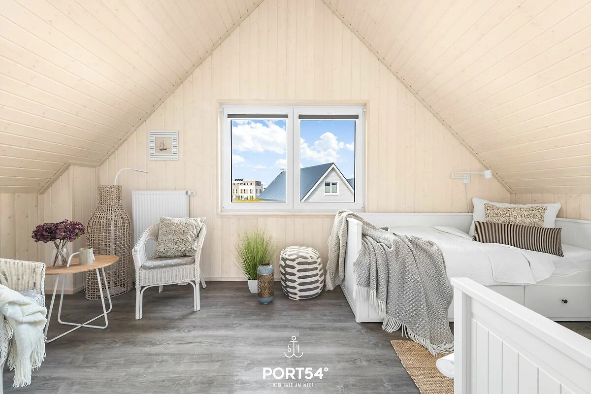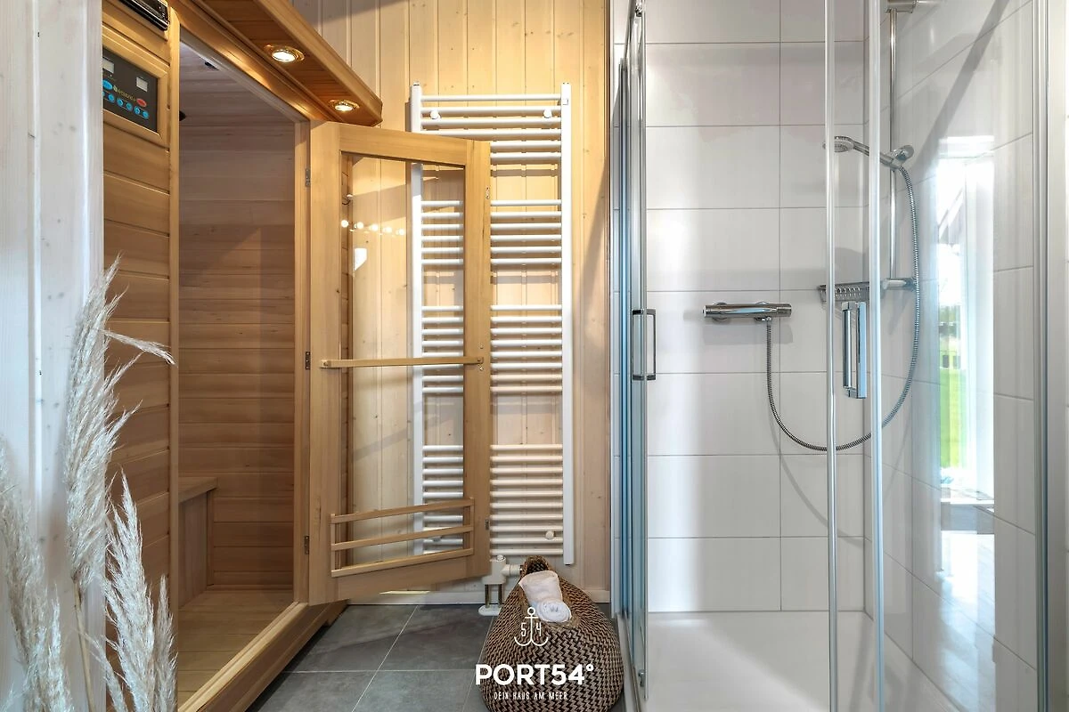 Herzlich Willkommen im "Haus Meerzeit" in Olpenitz. Ihr Feriendomizil besticht durch seine geschmackvolle Einrichtung und die liebevollen Details. Das freistehende Haus verfügt über einen offenen Wohn- und Essbereich, eine Küche, zwei Schlafzimmer und zwei Bäder. Die großen Fenster sorgen für ein lichtdurchflutetes, großzügiges Wohngefühl. Nach langen Strandspaziergängen können Sie auf dem gemütlichen Sofa vor dem Kamin entspannen und Ihre Lieblingsserie auf dem Flachbild-TV schauen. Die Küche bietet alles, was Sie für einen geselligen Kochabend mit der Familie benötigen. Im Obergeschoss finden Sie zwei Schlafzimmer, eins verfügt über ein Doppelbett (180x200cm), das zweite Schlafzimmer ist mit zwei Einzelbetten (90x200cm) ausgestattet. Ein Schlafsofa bietet zwei Kindern weitere Schlafmöglichkeiten. Damit einem erholsamen Schlaf nichts entgegen steht, sind beide Schlafzimmer mit Verdunkelungsmöglichkeiten ausgestattet. Außerdem finden Sie im Obergeschoss ein Badezimmer mit Badewanne zum Relaxen. Zudem befindet sich im Untergeschoss ein zweites Bad mit Dusche und als besonderes Highlight: eine Infrarot-Sauna. An sonnigen Tagen können Sie es sich auf der möblierten Terrasse gemütlich machen und an lauen Sommerabenden im Kreise Ihrer Liebsten den Urlaubsabend ausklingen lassen. Für die Kleinen steht ein Kinderhochstuhl sowie ein Babybett bereit. Für Ihren PKW stehen zwei Stellplätze vor dem Haus zur Verfügung. Das Haus wird für 4 Erwachsene und 2 Kinder angeboten.
