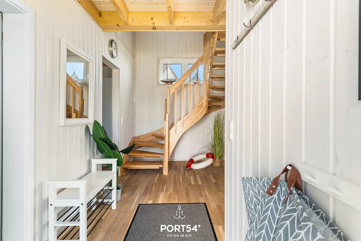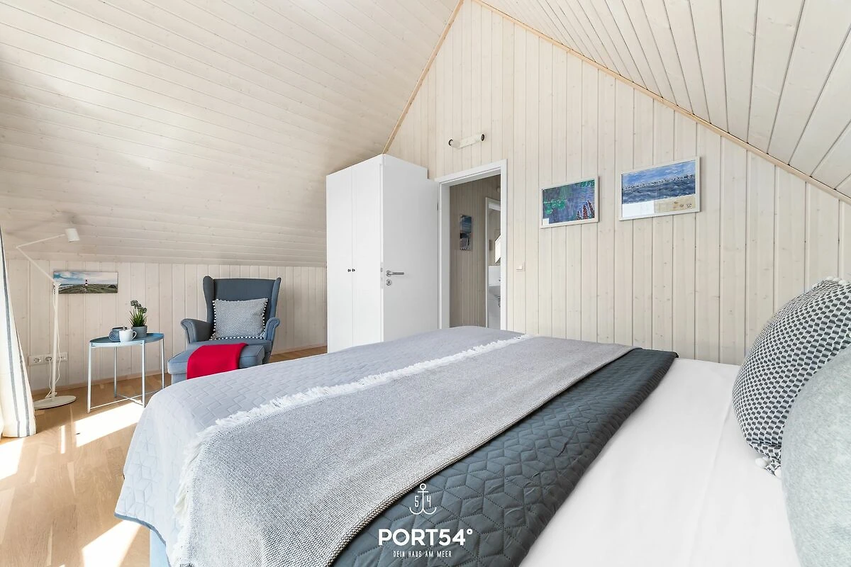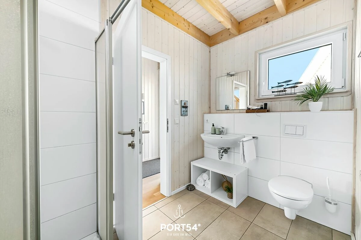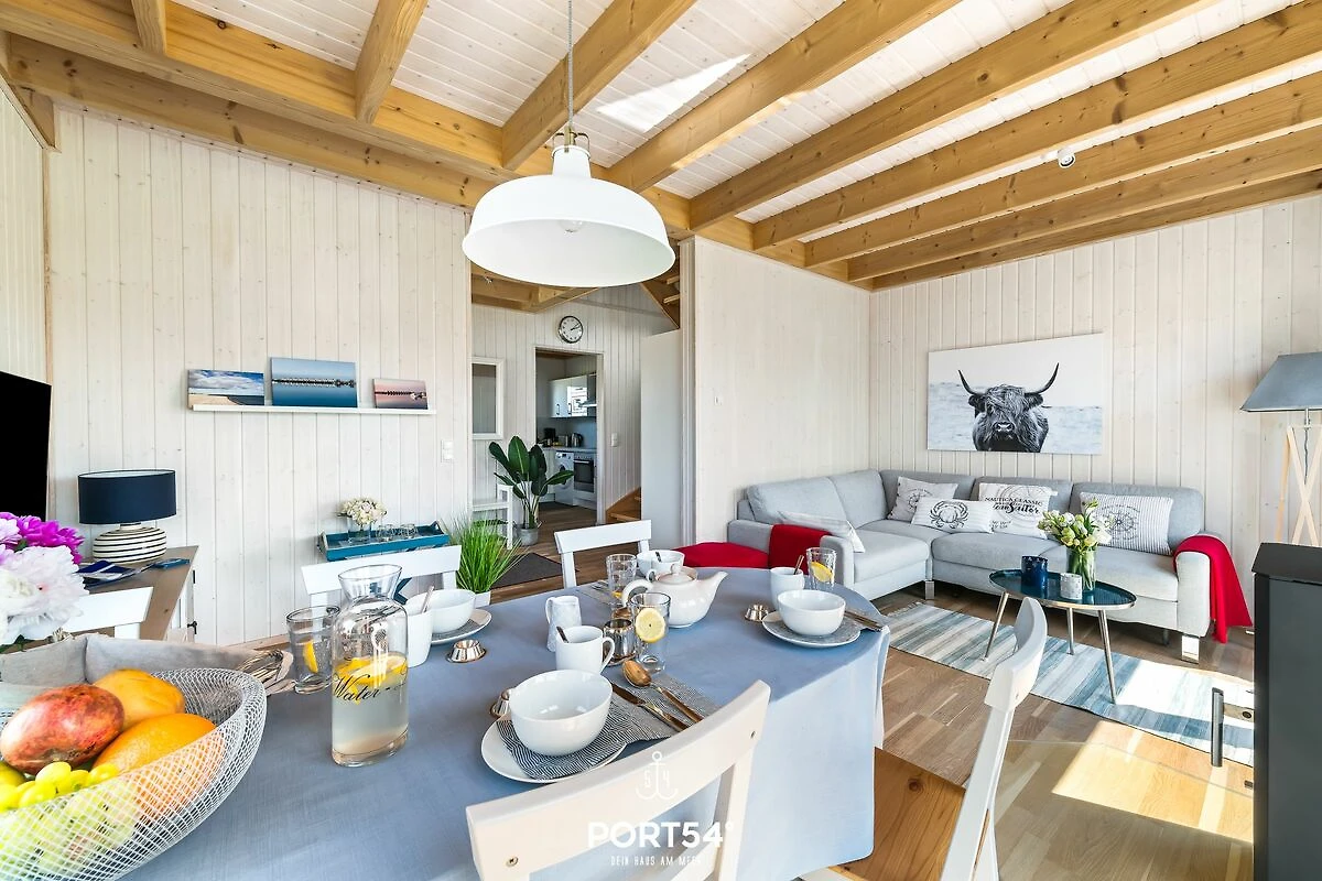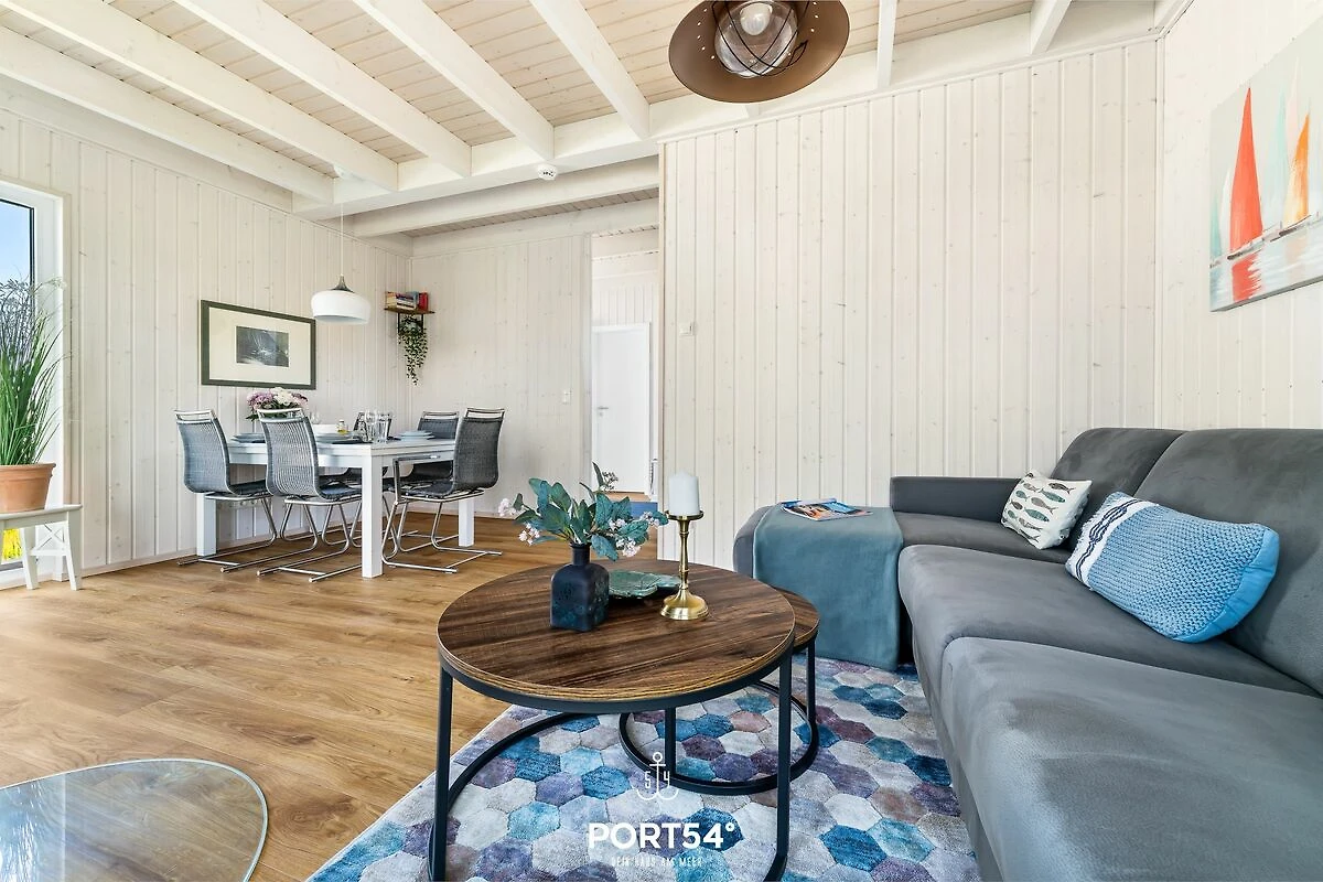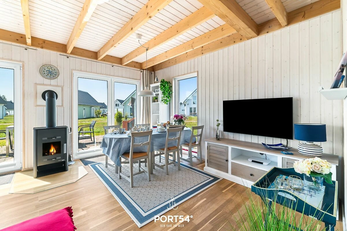 Willkommen im Haus "Meeresbrise" in Olpenitz. Das Haus verfügt über einen offenen Wohn- und Essbereich, eine Küche, zwei Schlafzimmer und zwei Bäder. Das Haus besticht durch seine Lage im Grünen und der unmittelbaren Nähe zur Ostsee. Die großen Fenster sorgen für ein lichtdurchflutetes, großzügiges Wohngefühl. Nach langen Strandspaziergängen können Sie auf dem gemütlichen Sofa vor dem Kamin entspannen und Ihre Lieblingsserie auf dem Flachbild-TV schauen. Dieser verfügt über Magenta TV sowie RTL+, was Sie kostenfrei während Ihres Aufenthalts nutzen können. Das Sofa kann hier zu einer Schlafcouch (140x200cm) ausgezogen werden. Die Küche bietet alles, was Sie für einen geselligen Kochabend mit der Familie benötigen. Im ersten Obergeschoss befinden sich die zwei Schlafzimmer: Das eine ist mit einem Doppelbett (180x200cm) ausgestattet, das andere verfügt über zwei Einzelbetten (je 100x200cm). Für erholsame Nächte sind beide Schlafzimmer mit Verdunkelungsmöglichkeiten ausgestattet. Ein Badezimmer befindet sich im Erdgeschoss und ist mit einer ebenerdigen Dusche, einer Handtuchheizung und dem Highlight: einer Infrarot-Sauna ausgestattet. Hier können Sie sich an kalten Tagen aufwärmen und entspannen. Ein weiteres Badezimmer im ersten Obergeschoss bietet eine Duschwanne, ebenfalls eine Handtuchheizung und einen Föhn. Weitere Annehmlichkeiten sind eine Waschmaschine, ein Wäscheständer sowie ein Akkustaubsauger. An sonnigen Tagen können Sie es sich auf der möblierten Terrasse gemütlich machen. Im Strandkorb können Sie ihre Urlaubstage genießen und an lauen Sommerabenden mit der Familie die Tage auf der Terrasse ausklingen lassen. Das Ferienhaus ist für maximal vier Erwachsene und zwei Kinder vorgesehen, da das Schlafsofa 140cm breit ist. Im abschließbaren Fahrradschuppen können Sie Ihre mitgebrachten oder bei uns geliehenen Fahrräder unterstellen. Direkt vor dem Haus finden Sie einen kostenfreien Parkplatz, sowie eine E-Ladesäule. Die Abrechnung erfolgt direkt an der Säule.