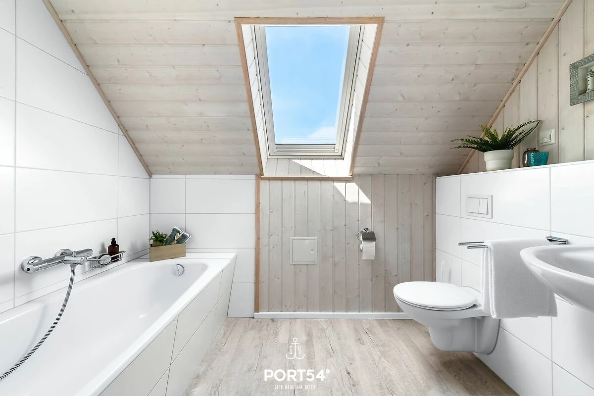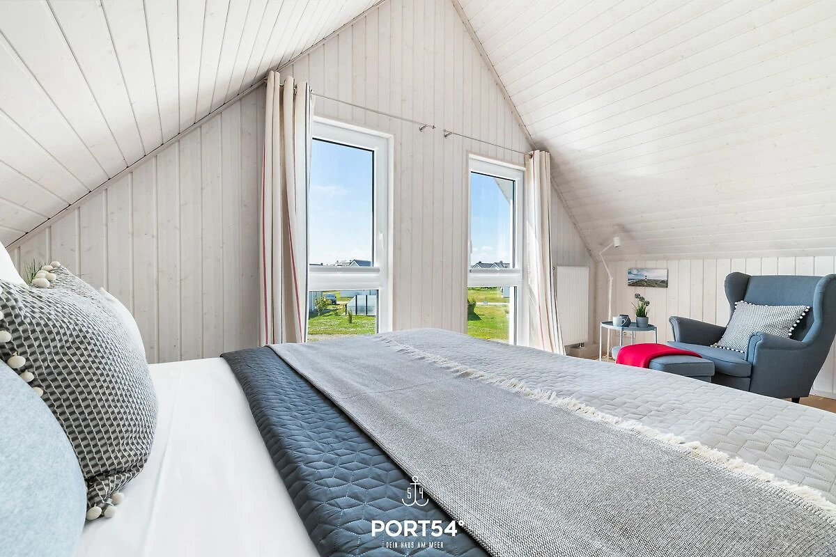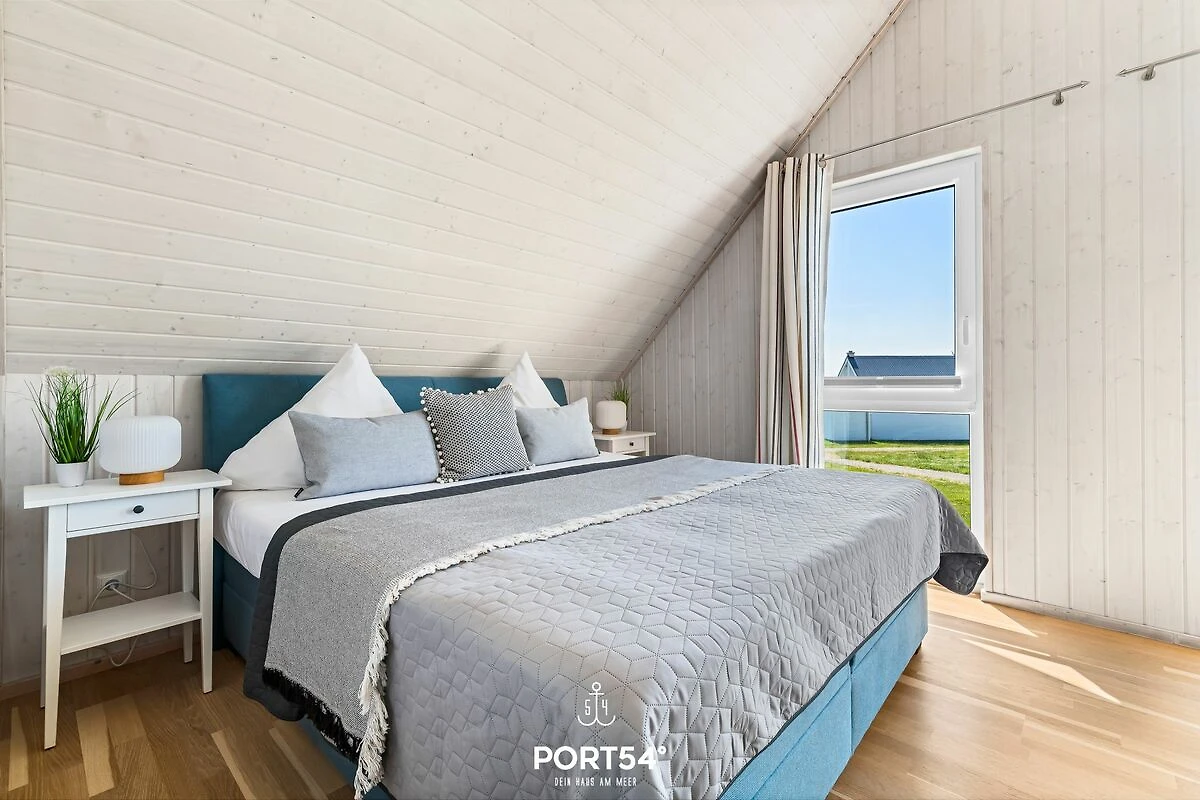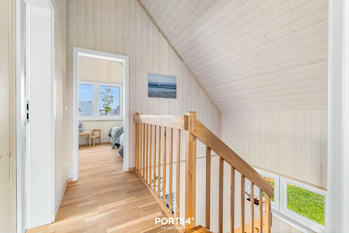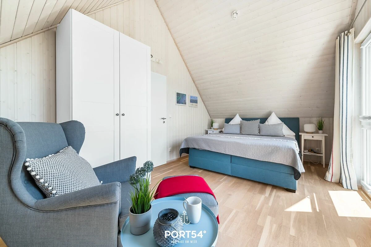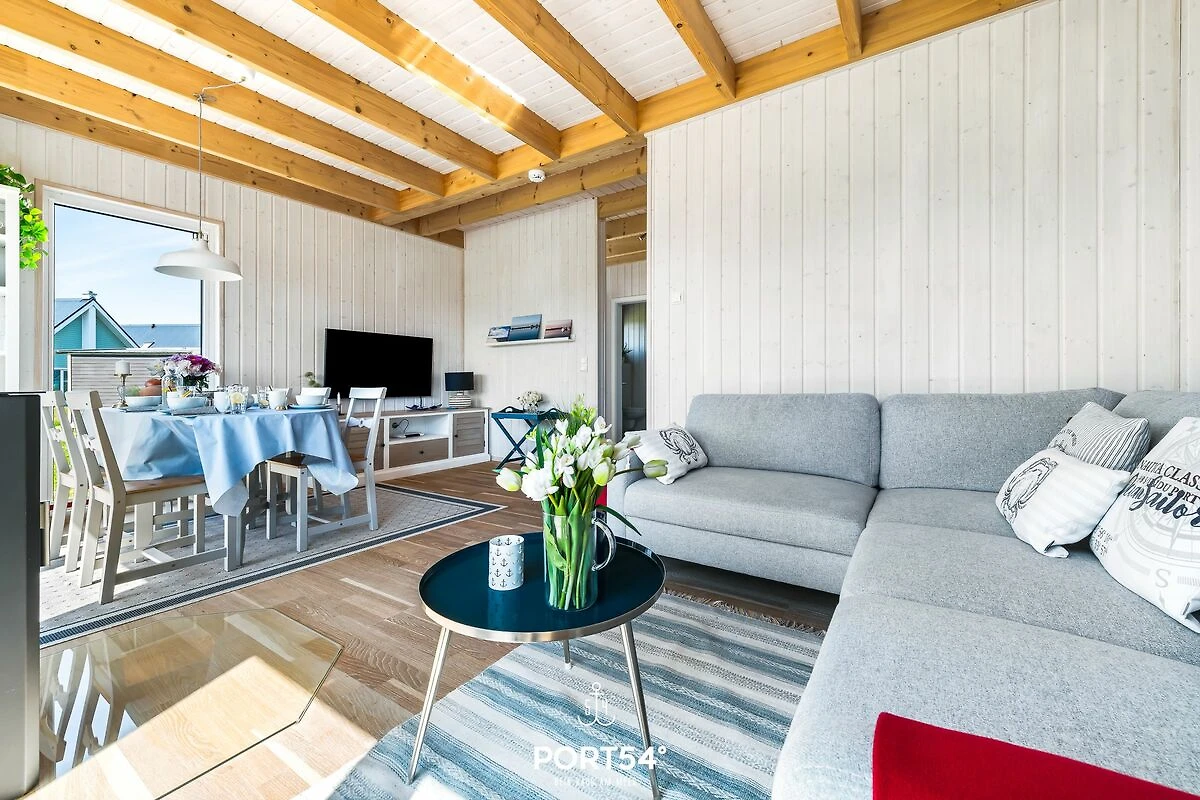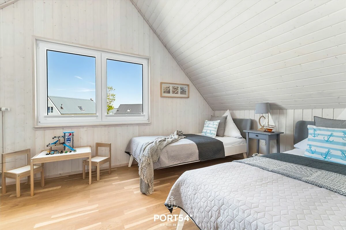 Willkommen im Haus "Meeresbrise" in Olpenitz. Das Haus verfügt über einen offenen Wohn- und Essbereich, eine Küche, zwei Schlafzimmer und zwei Bäder. Das Haus besticht durch seine Lage im Grünen und der unmittelbaren Nähe zur Ostsee. Die großen Fenster sorgen für ein lichtdurchflutetes, großzügiges Wohngefühl. Nach langen Strandspaziergängen können Sie auf dem gemütlichen Sofa vor dem Kamin entspannen und Ihre Lieblingsserie auf dem Flachbild-TV schauen. Dieser verfügt über Magenta TV sowie RTL+, was Sie kostenfrei während Ihres Aufenthalts nutzen können. Das Sofa kann hier zu einer Schlafcouch (140x200cm) ausgezogen werden. Die Küche bietet alles, was Sie für einen geselligen Kochabend mit der Familie benötigen. Im ersten Obergeschoss befinden sich die zwei Schlafzimmer: Das eine ist mit einem Doppelbett (180x200cm) ausgestattet, das andere verfügt über zwei Einzelbetten (je 100x200cm). Für erholsame Nächte sind beide Schlafzimmer mit Verdunkelungsmöglichkeiten ausgestattet. Ein Badezimmer befindet sich im Erdgeschoss und ist mit einer ebenerdigen Dusche, einer Handtuchheizung und dem Highlight: einer Infrarot-Sauna ausgestattet. Hier können Sie sich an kalten Tagen aufwärmen und entspannen. Ein weiteres Badezimmer im ersten Obergeschoss bietet eine Duschwanne, ebenfalls eine Handtuchheizung und einen Föhn. Weitere Annehmlichkeiten sind eine Waschmaschine, ein Wäscheständer sowie ein Akkustaubsauger. An sonnigen Tagen können Sie es sich auf der möblierten Terrasse gemütlich machen. Im Strandkorb können Sie ihre Urlaubstage genießen und an lauen Sommerabenden mit der Familie die Tage auf der Terrasse ausklingen lassen. Das Ferienhaus ist für maximal vier Erwachsene und zwei Kinder vorgesehen, da das Schlafsofa 140cm breit ist. Im abschließbaren Fahrradschuppen können Sie Ihre mitgebrachten oder bei uns geliehenen Fahrräder unterstellen. Direkt vor dem Haus finden Sie einen kostenfreien Parkplatz, sowie eine E-Ladesäule. Die Abrechnung erfolgt direkt an der Säule.