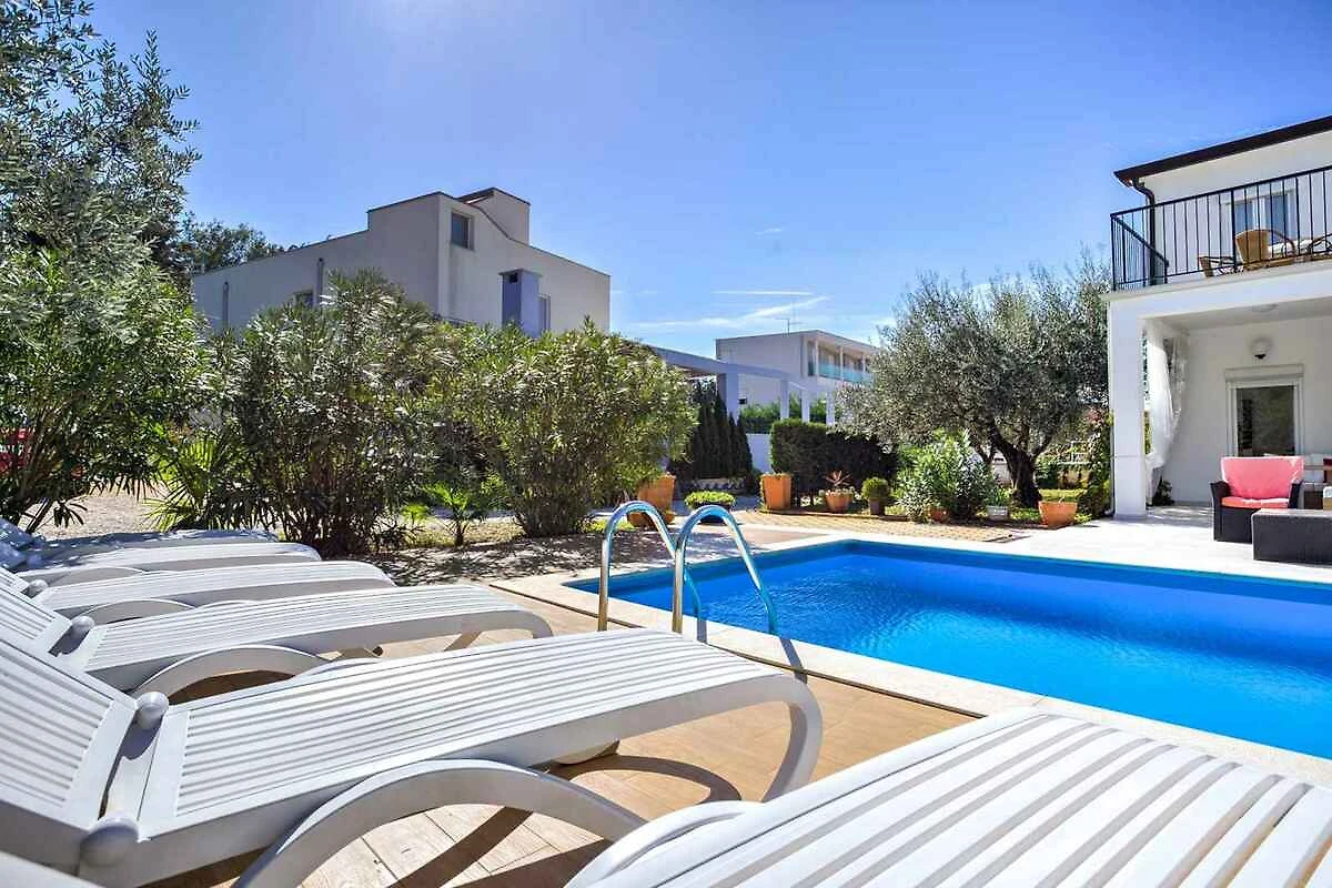 Zambratija. Die Ferienwohnung befindet sich auf einem 1000 qm grossen Gartengrundstück mit Wiese, Blumen, Sträuchern und Bäumen. Die Zufahrt erfolgt über eine Nebenstrasse. Parkplatz auf dem Grundstück.
