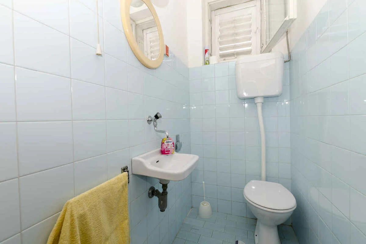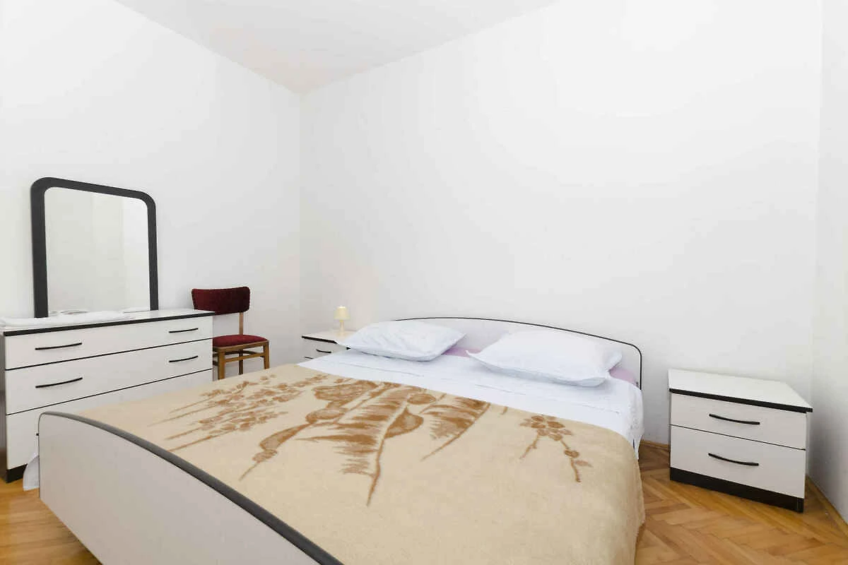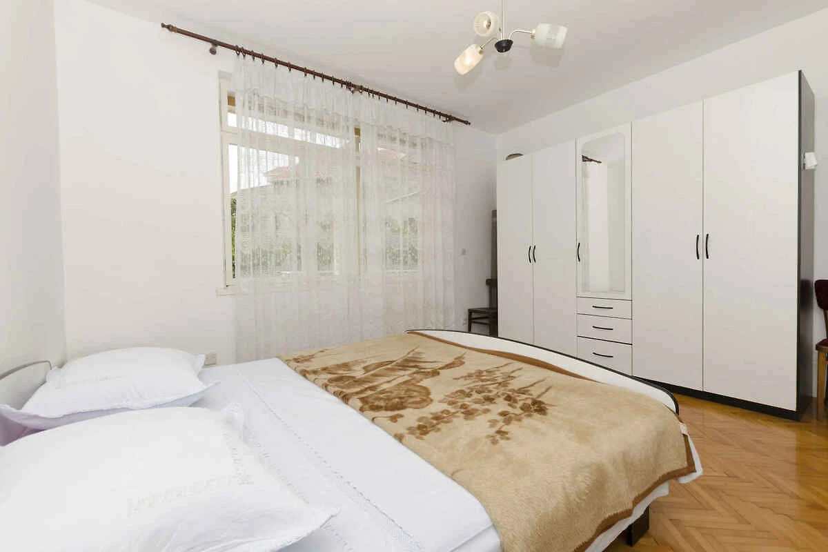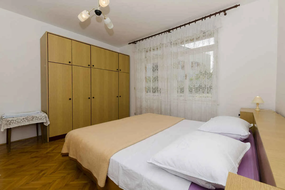 Primošten. Die Ferienwohnung befindet sich auf einem Gartengrundstück. Die Zufahrt erfolgt direkt von der Hauptstrasse (asphaltiert). Parkplatz auf der Strasse vor dem Haus.