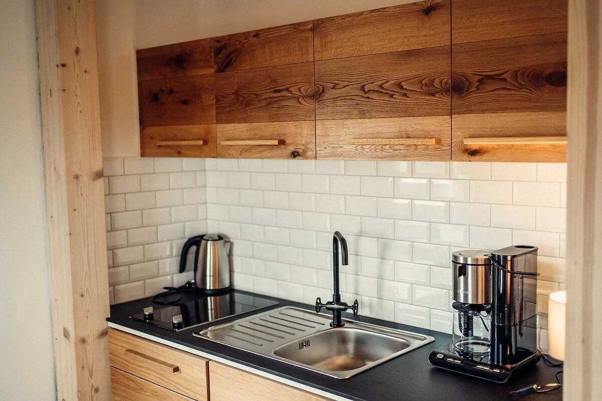 Im Appartementflügel befinden sich drei Appartements mit insgesamt neun separaten Aufenthaltsbereichen (sechs Doppelzimmer, drei Wohn-Schlafräumen mit hochwertigen Schafsofas, 3 Bäder).