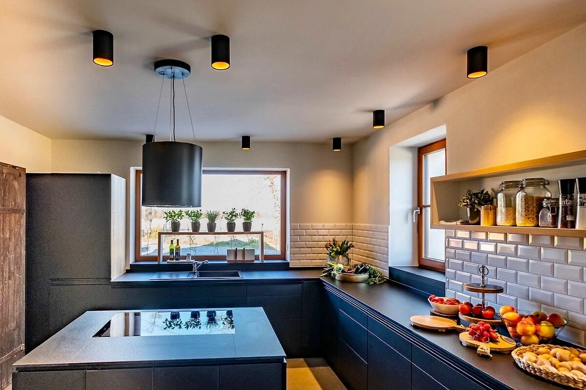 Der Gebäudeflügel Refugium bietet einen grossen Raum (60 m² Grundfläche) mit offenen Dachstuhl+ Galerie, eine grosse voll ausgestattete Küche mit Panoramafenster, Kochinsel und Speisekammer sowie einen lichtdurchfluteten Wintergarten (25 m² Grundfläche).
