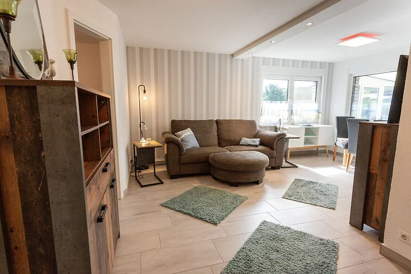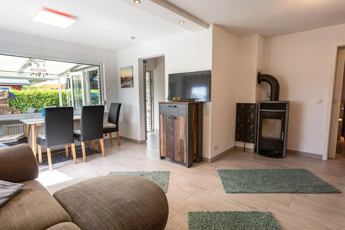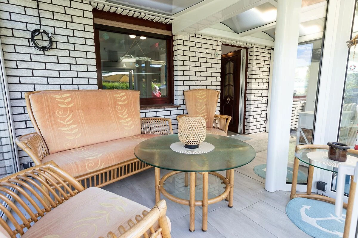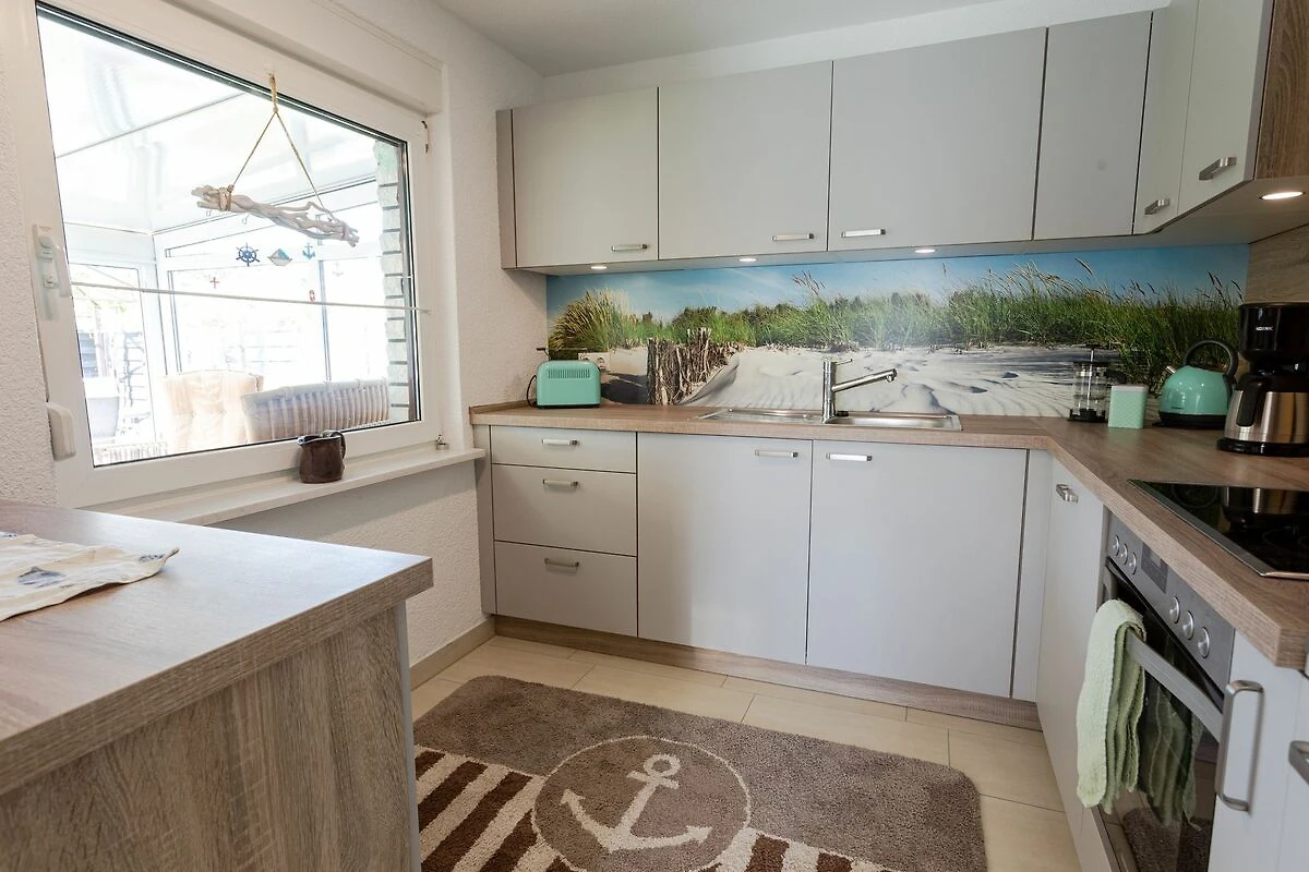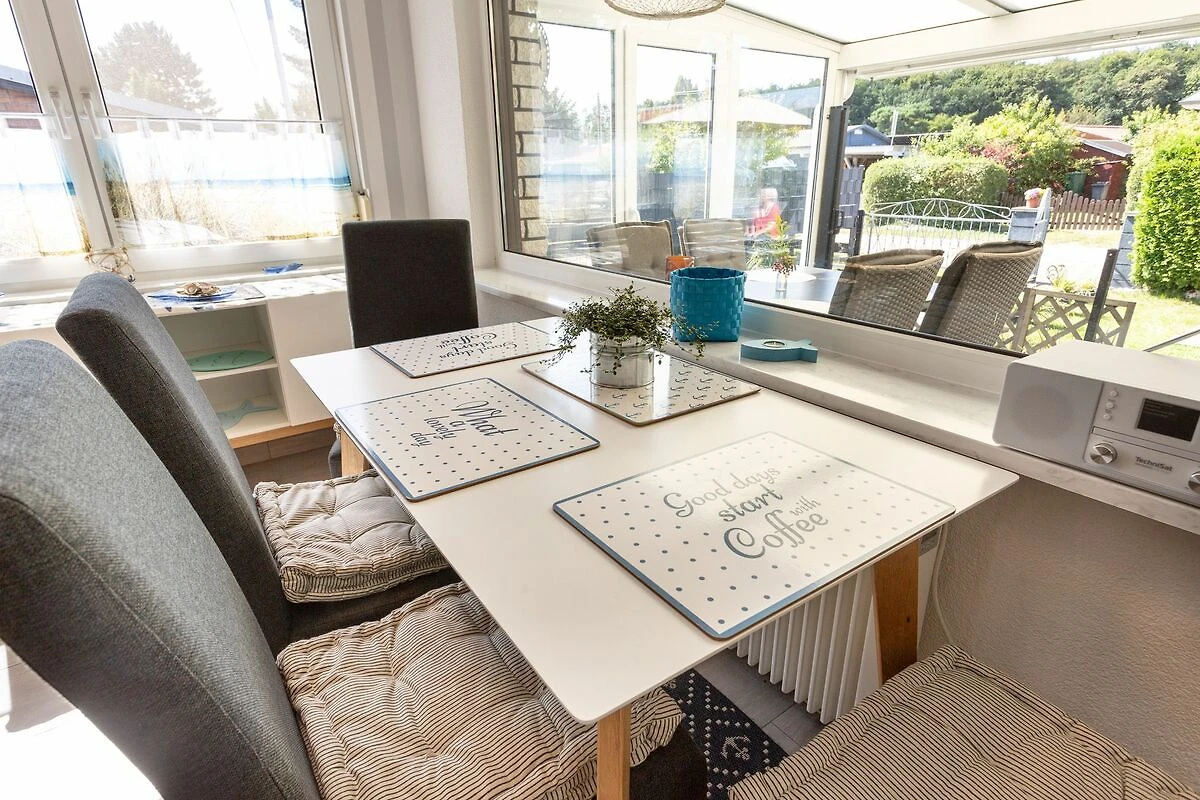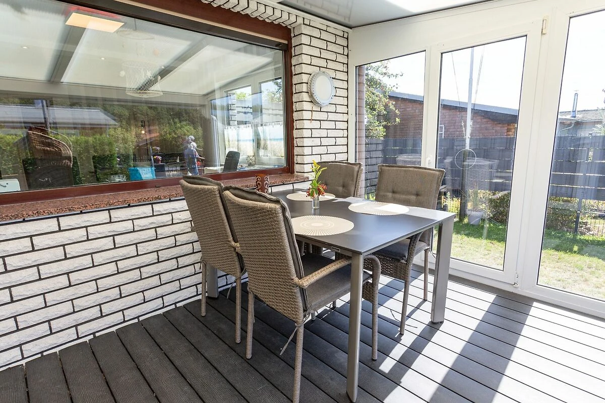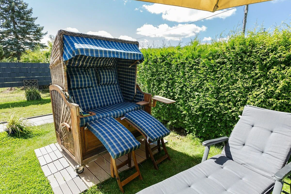 Im Bungalow Strand Haus in Loissin, nur 150 Meter vom Strand entfernt, kannst du dich auf einen entspannten Urlaub freuen. Dieses gemütliche Ferienhaus liegt idyllisch zwischen Greifswald und Lubmin und bietet auf 75 m² ausreichend Platz für bis zu 4 Personen. Über den charmanten Wintergarten betrittst du deine Zuhause auf Zeit. Vom Wohnzimmer mit offener Küche erreichst du die beiden Schlafzimmer. Das Hauptschlafzimmer verfügt über ein bequemes Doppelbett, während das zweite Schlafzimmer mit einem Etagenbett ausgestattet ist. Der einladende Wohnbereich besticht durch sein gemütliches Sofa, einen TV und einen Kamin, der an kühleren Abenden eine behagliche Atmosphäre schafft. Das Badezimmer ist modern ausgestattet und verfügt über eine ebenerdige Dusche sowie eine Waschmaschine praktisch für einen längeren Aufenthalt. Der Wintergarten ergänzt das Wohnzimmer perfekt und bietet einen wunderbaren Ort, um bei jedem Wetter die Aussicht in den Garten zu geniessen und zu entspannen. Der Aussenbereich lädt mit einer Terrasse und eigener Sauna zum Verweilen ein. Hier findest du einen Grill für gesellige Abende, einen Sonnenschirm, Liegestühle und eine Hollywoodschaukel zum Entspannen. Ein besonderer Pluspunkt ist der Strandkorb im Garten, in dem du die frische Seeluft geniessen kannst. Nach einem Saunagang kannst du dich unter der Aussendusche erfrischen und das entspannte Gefühl noch ein wenig länger geniessen.