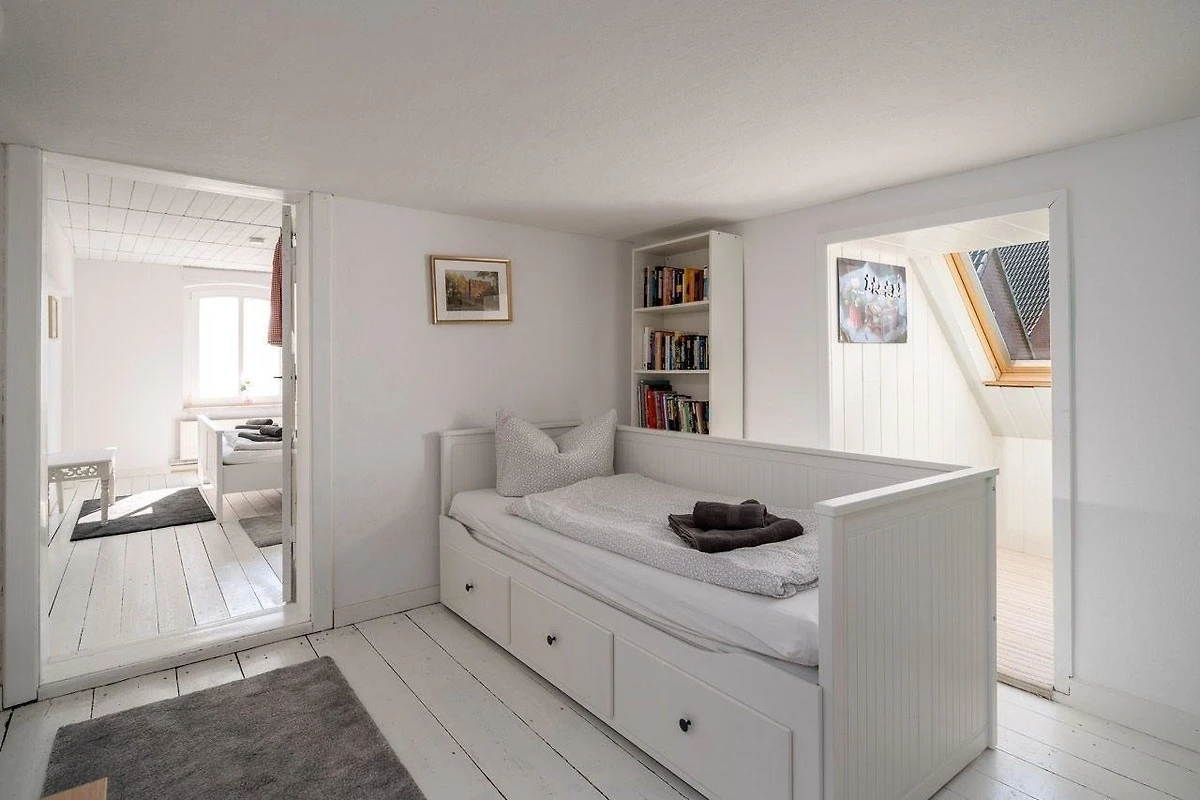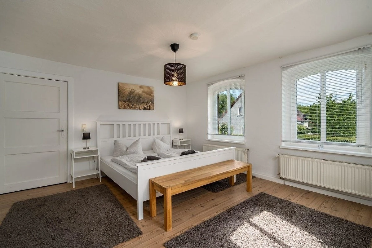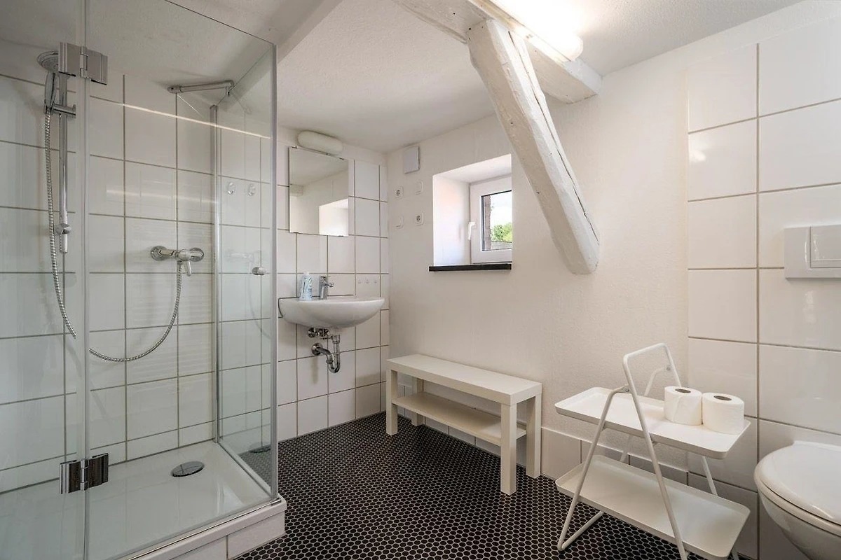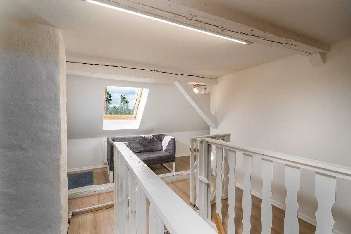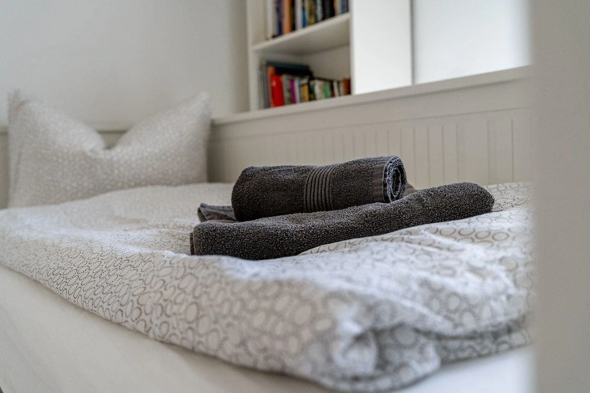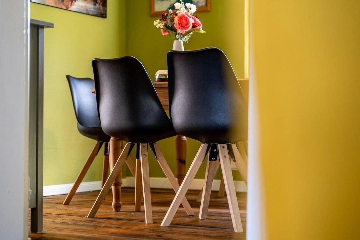 Diese Ferienwohnung bietet eine stilvolle Ausstattung und ausreichend Raum für einen erholsamen Aufenthalt. Im Erdgeschoss befinden sich zwei gemütliche Schlafzimmer mit Doppelbetten sowie ein modernes Badezimmer mit bodengleicher Dusche. Im Obergeschoss lädt ein weiteres Schlafzimmer mit einem Durchgangszimmer zum Entspannen ein. Die offene, voll ausgestattete Küche ist mit einem Geschirrspüler, Elektro-/Gasherd, Backofen, Mikrowelle, Kühlschrank und Gefriermöglichkeit ausgestattet, ergänzt durch eine Kaffeemaschine und einen Toaster. Ein Esstisch bietet Platz für gemeinsame Mahlzeiten. Für Familien steht ein Kinderhochstuhl sowie ein Kindertoilettensitz bereit. Der Wohnbereich mit Sofa und Sessel, ein Kamin und der TV sorgen für einen gemütlichen Abend. Die Wohnung ist allergikergeeignet und verfügt über WLAN, einen Parkplatz sowie notwendige Reinigungsmittel. Rauchmelder und Treppenschutz gewährleisten Sicherheit in der Unterkunft.