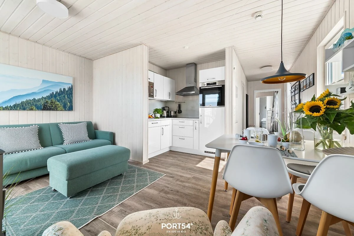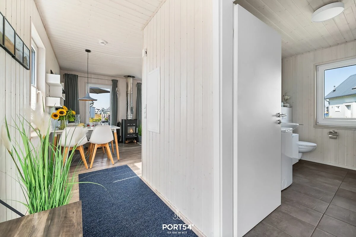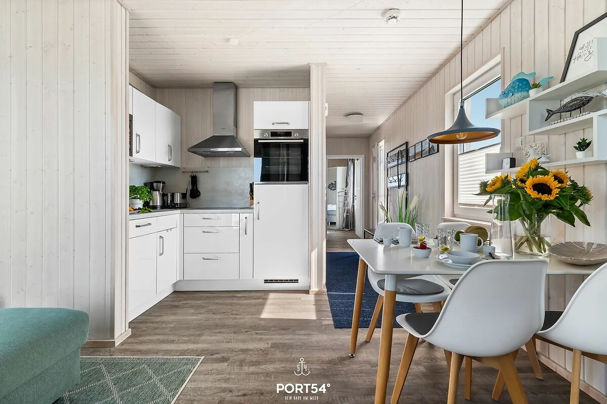 Herzlich Willkommen in Ihrem Ferienhaus "Nautilus" in Olpenitz. Ihr freistehendes, 50m² großes Haus besticht durch seine Lage im Grünen und der Nähe zur Ostsee. Ihr gemütlich eingerichtetes Feriendomizil verfügt über einen offenen Wohn- und Essbereich, ein Bad und ein Schlafzimmer. Genießen Sie die Abende im Wohnbereich vor dem Kamin mit einem guten Buch oder schauen Sie Ihre Lieblingsserie auf dem Flachbild-TV. Die Couch lässt sich zu einem Schlafsofa umfunktionieren (140x200cm) und bietet somit zwei Schlafplätze für Kinder. Die vollausgestattete Küchenecke lässt keine Wünsche offen. Hier können Sie sich und Ihre Familie kulinarisch verwöhnen. Das Schlafzimmer bietet ein gemütliches King-Size Boxspring-Doppelbett (200x200cm), einen Kleiderschrank, eine Kommode sowie einen Flachbild-TV. Die Fenster verfügen über eine Verdunkelungsmöglichkeit, somit steht einem erholsamen Schlaf nichts mehr im Wege. Im Bad erwartet Sie eine große ebenerdige Dusche, ein WC, ein Waschbecken, eine Waschmaschine und als Highlight, eine Infrarotkabine. Hier können Sie sich nach langen Strandspaziergängen aufwärmen und entspannen. Laue Sommerabende können Sie auf der nach Westen ausgerichteten, möblierten Terrasse genießen. Lassen Sie im Strandkorb einfach mal Ihre Seele baumeln. Ein Holzkohlegrill steht zur Verfügung, sodass Sie gern einen gemütlichen Grillabend ausrichten können. Für Ihre mitgebrachten oder beim Tourguide gemieteten Räder steht ein abschließbarer Schuppen zur Verfügung. Auch für Ihren PKW gibt es einen Parkplatz direkt vor dem Haus. Das Ferienhaus wird für 2 Erwachsene und 2 Kinder angeboten.