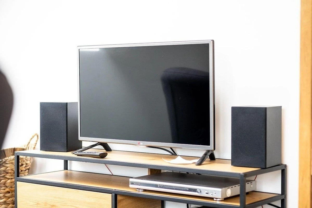 Der gemütliche Wohnbereich ist mit Fernseher, HiFi-Anlage und einem Esstisch ausgestattet, während ein Sofa und ein Sessel zum Entspannen einladen. WLAN-Internet ist im gesamten Bereich verfügbar. Ein Parkplatz ist ebenfalls vorhanden. Die Wohnung bietet einen komfortablen Rückzugsort für Familien und Paare, die Wert auf ein ansprechendes Ambiente legen.