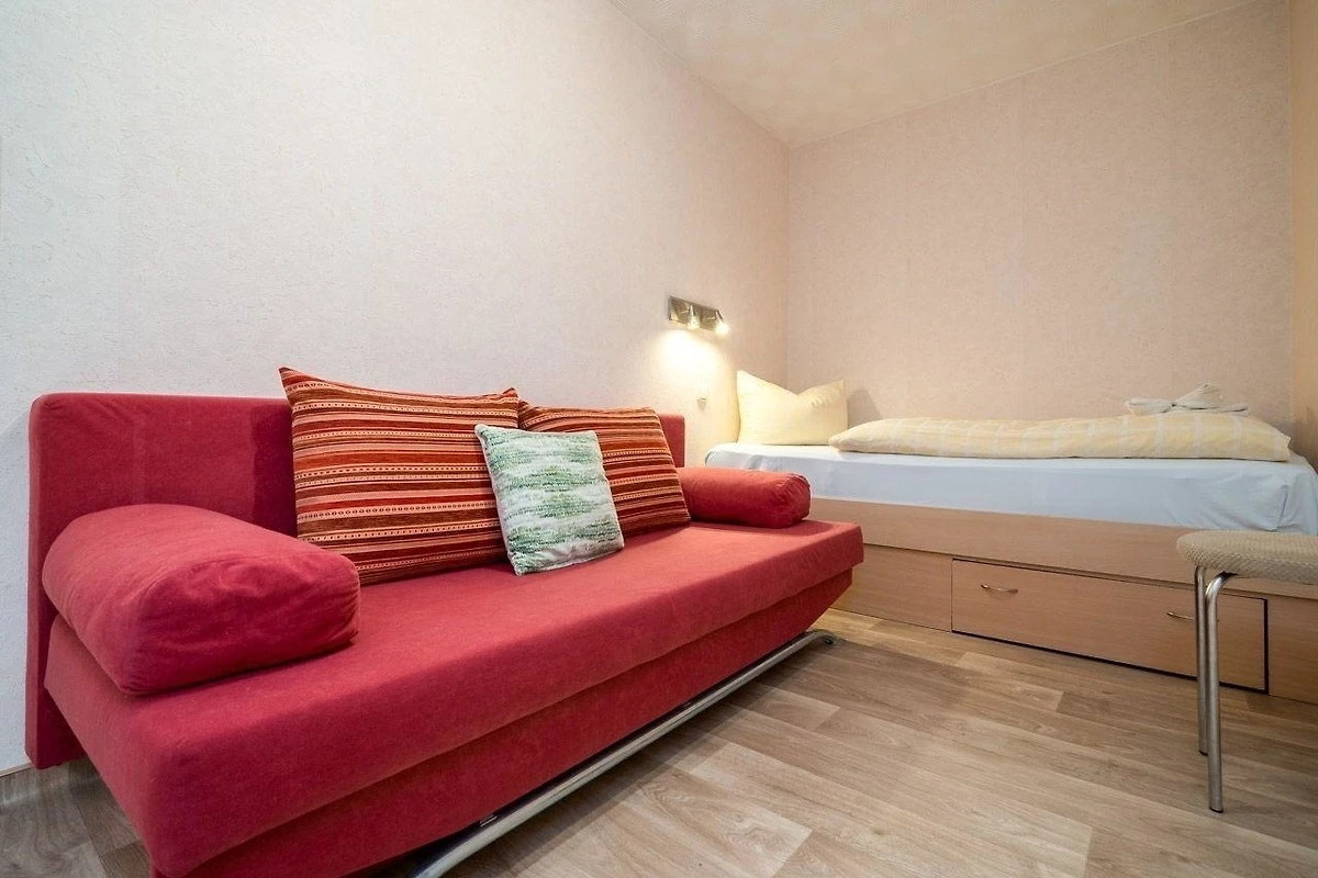 Die Ferienwohnung bietet eine komfortable und moderne Ausstattung, die sowohl für Senioren als auch für Allergiker geeignet ist. Sie verfügt über zwei grosszügige Schlafzimmer, eines mit einem Doppelbett und das andere mit einem Einzelbett sowie einer ausziehbaren Schlafcouch für Kinder. Das Badezimmer mit Fenster ist mit einer bodengleichen Dusche ausgestattet und bietet zusätzlichen Komfort.