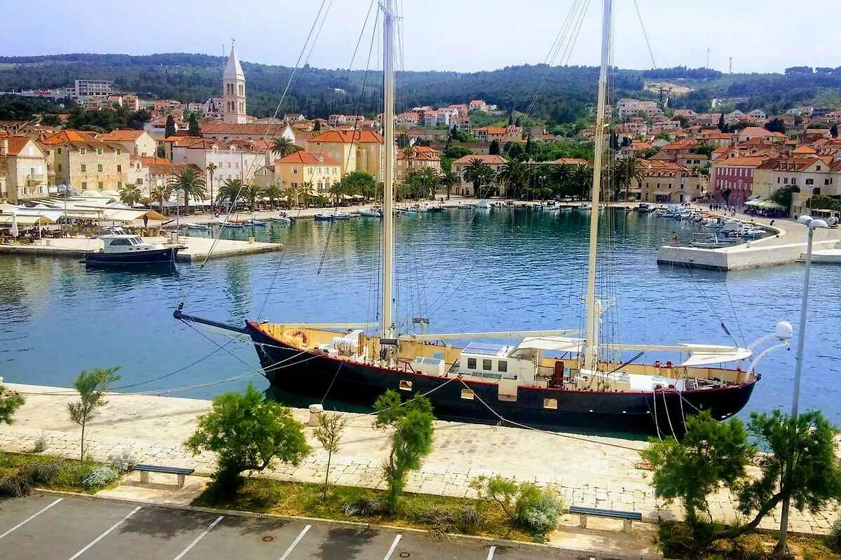 Supetar. Die Zufahrt erfolgt über eine Nebenstrasse. Parkplatz auf der Strasse vor dem Haus.